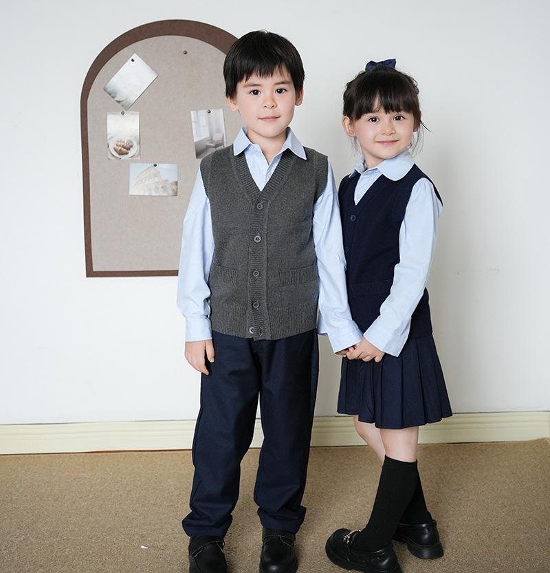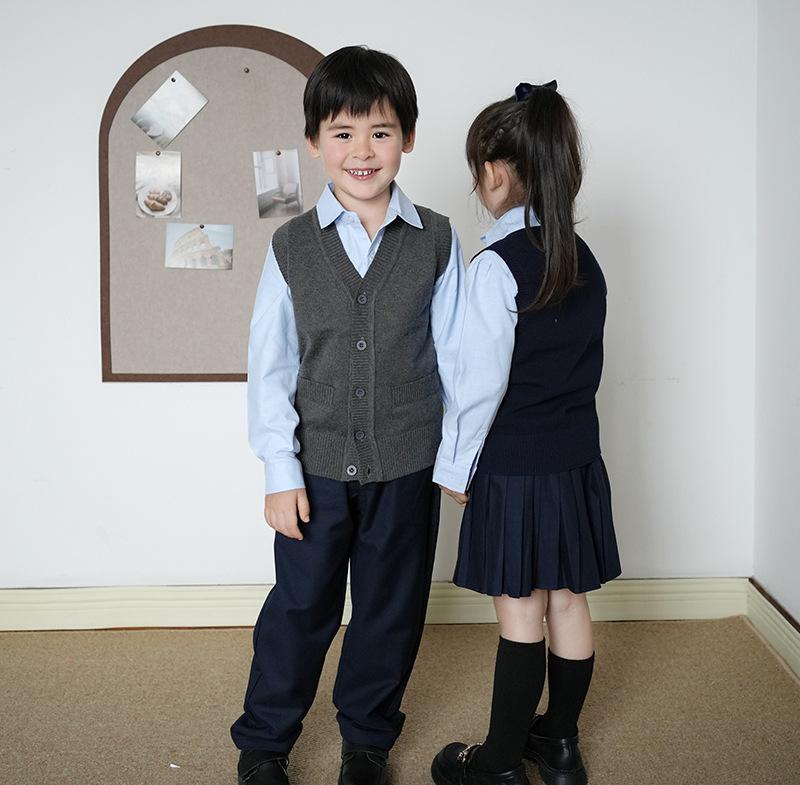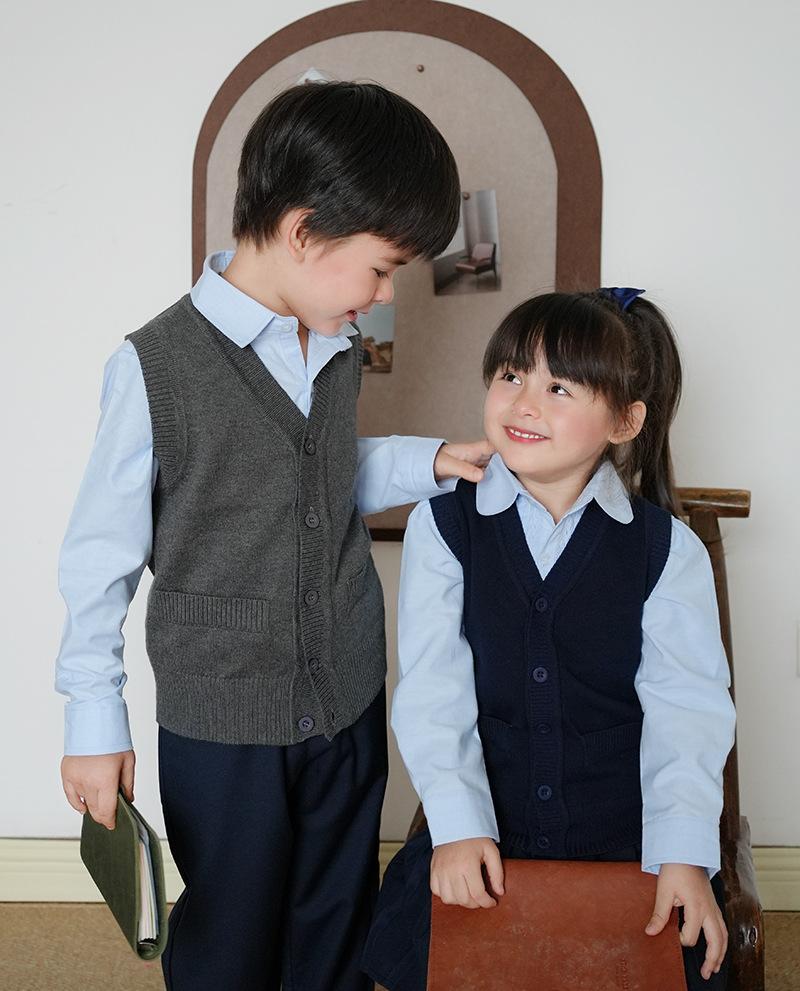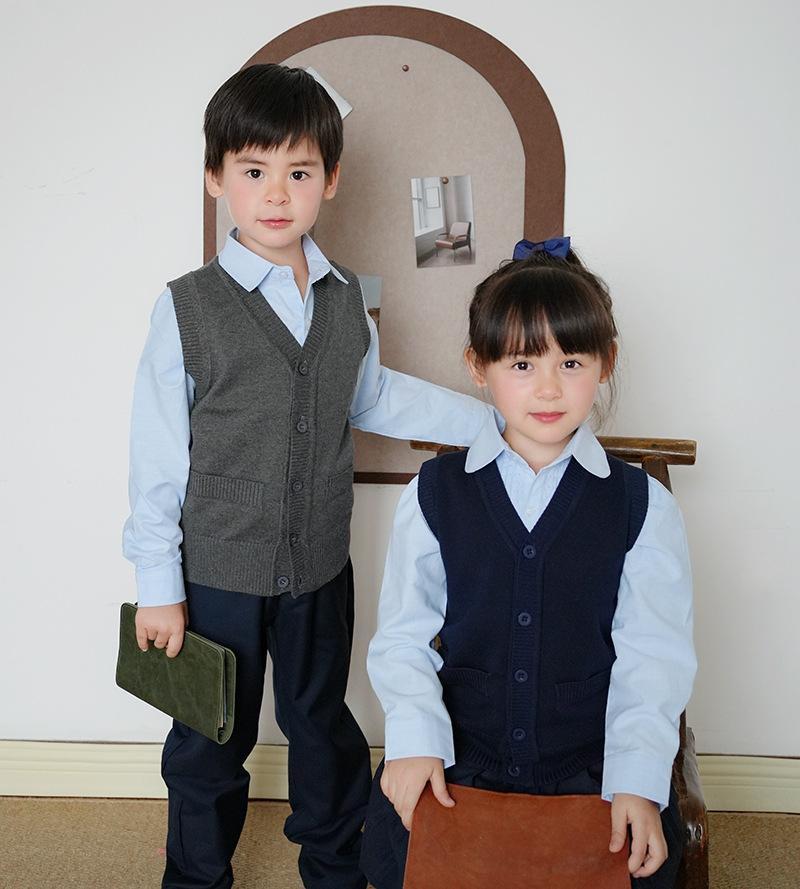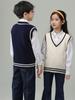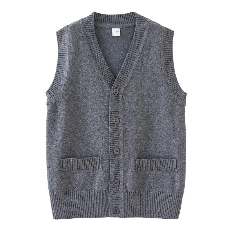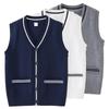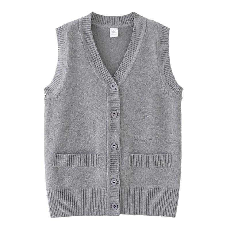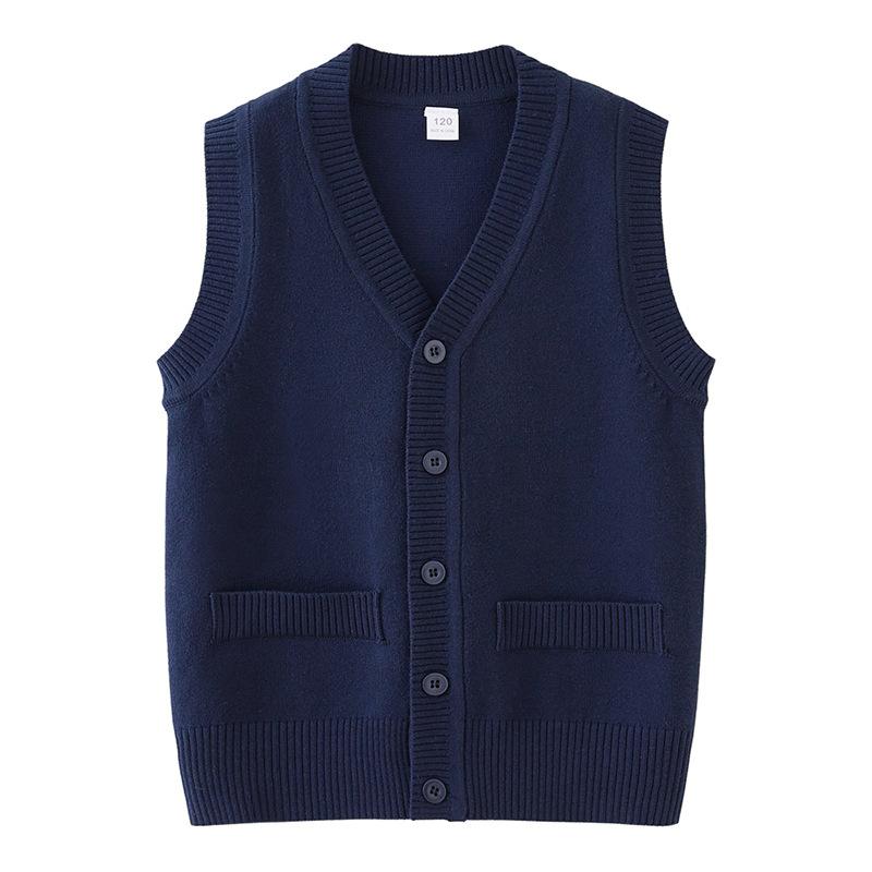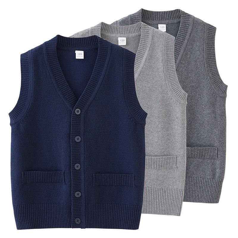 Chaleco de punto tipo cárdigan con bolsillo falso para niños y niñas, chaqueta de punto de talla mediana y grande, uniforme escolar, venta al por mayor, transfronterizo europeo y americano