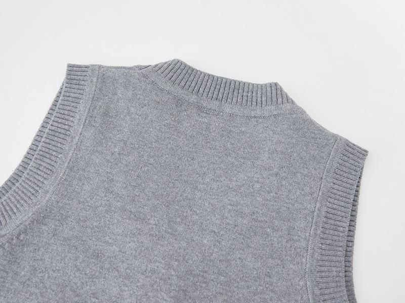 Chaleco suéter infantil de punto con cuello en V y bolsillo simulado para exterior