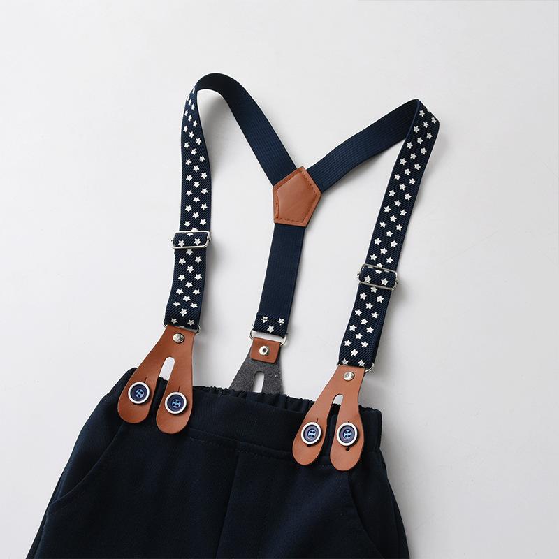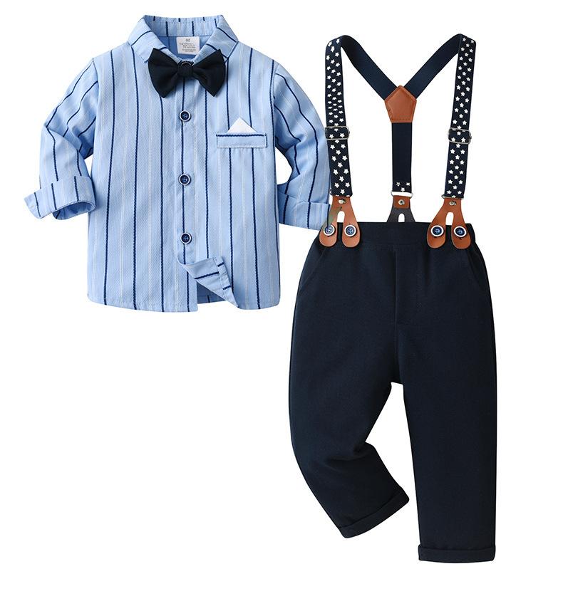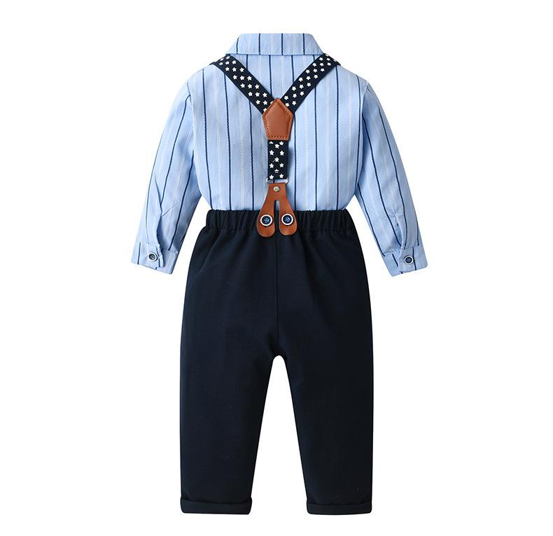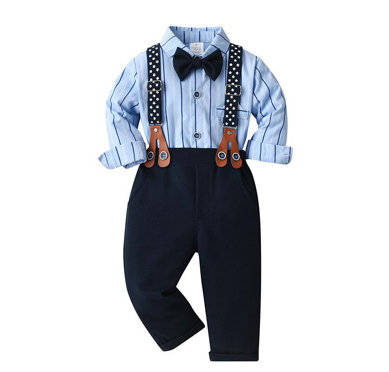 Ropa infantil de comercio exterior, pantalones con tirantes británicos de dos piezas, traje infantil, ropa de bebé, ropa de niño a rayas de primavera y otoño, ropa de niño de otoño