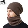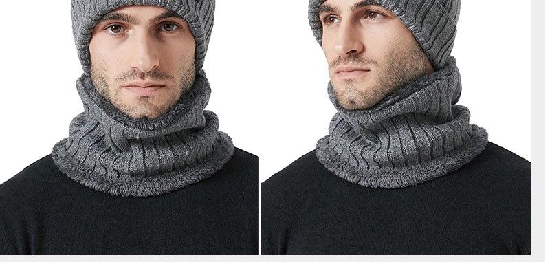 Fábrica de sombreros otoño e invierno nuevo gorro de punto para hombre bufanda de dos piezas protección para los oídos al aire libre forrado de polar traje cálido moda