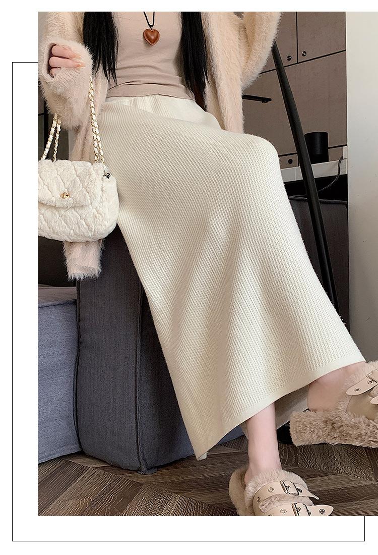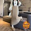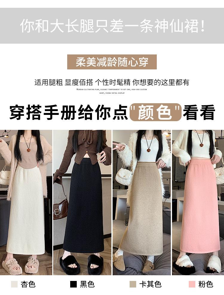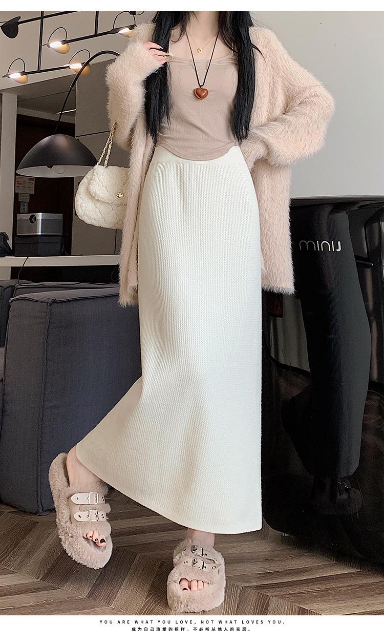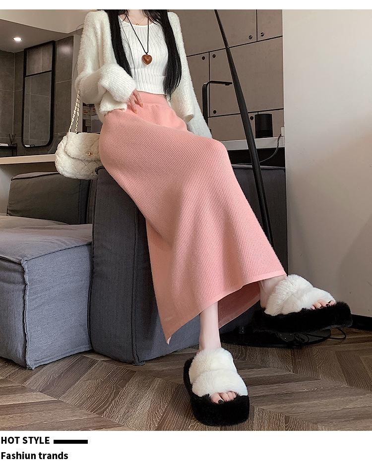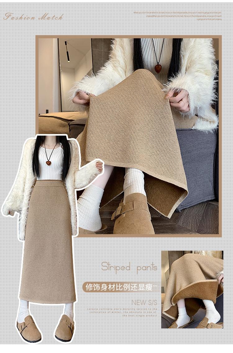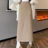 Falda tejida gruesa con forro polar para mujer otoño e invierno adelgazante línea A midi falda de cintura alta recta con abertura falda de un paso