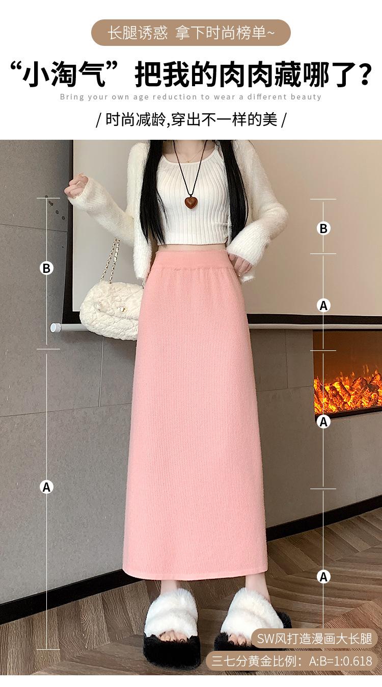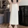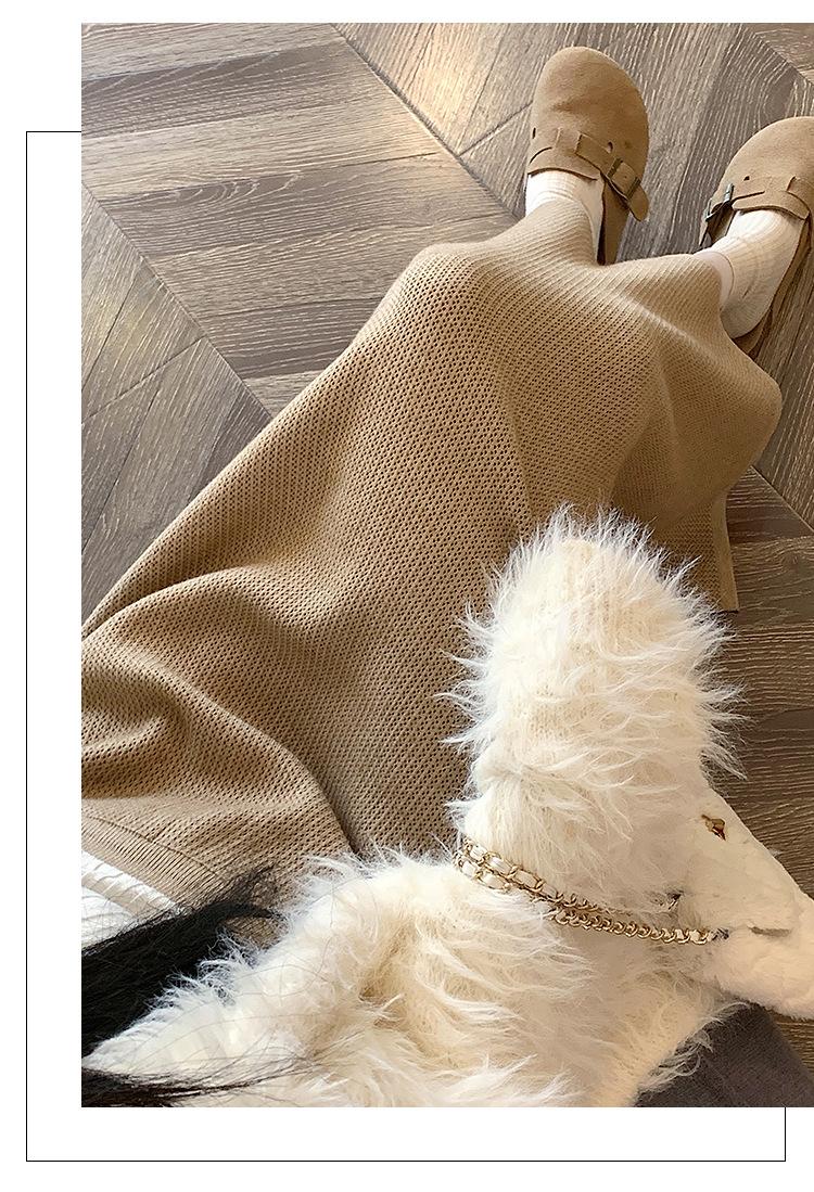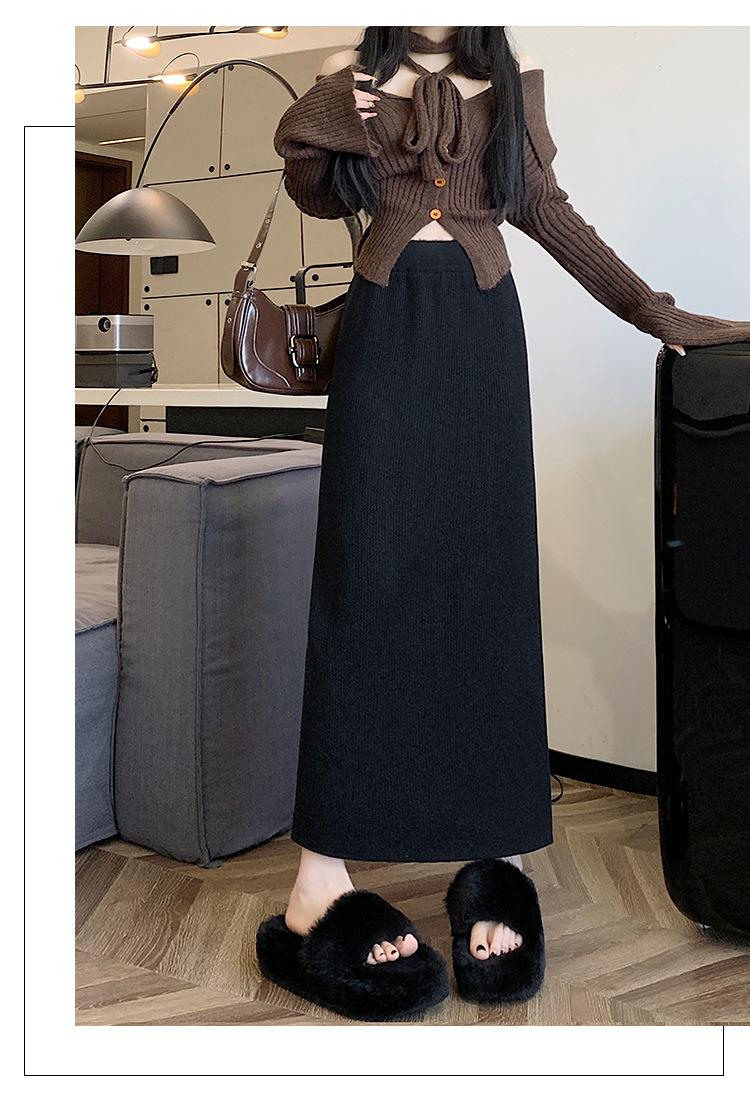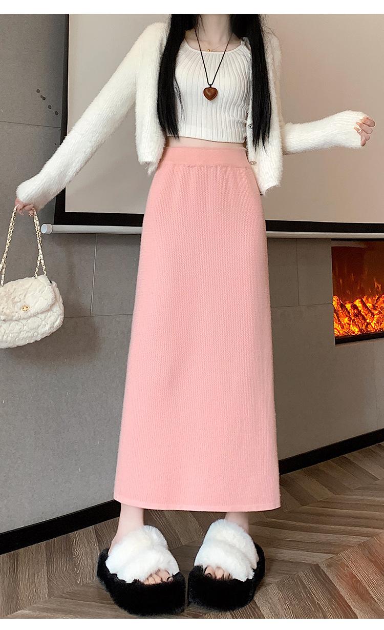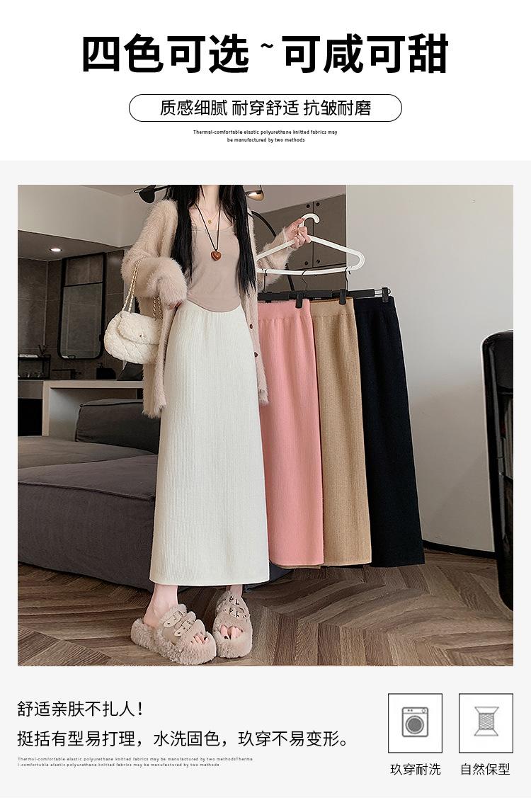 Falda tejida gruesa con forro polar para mujer otoño e invierno adelgazante línea A midi falda de cintura alta recta con abertura falda de un paso