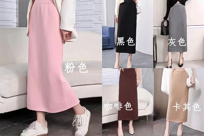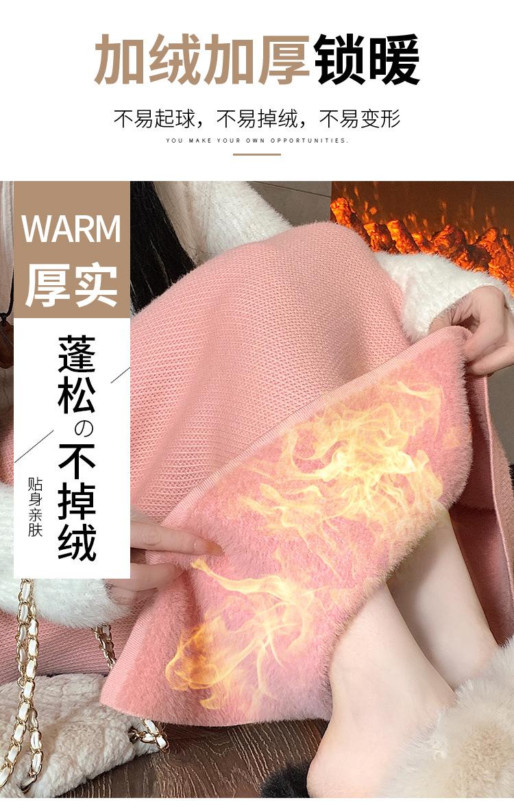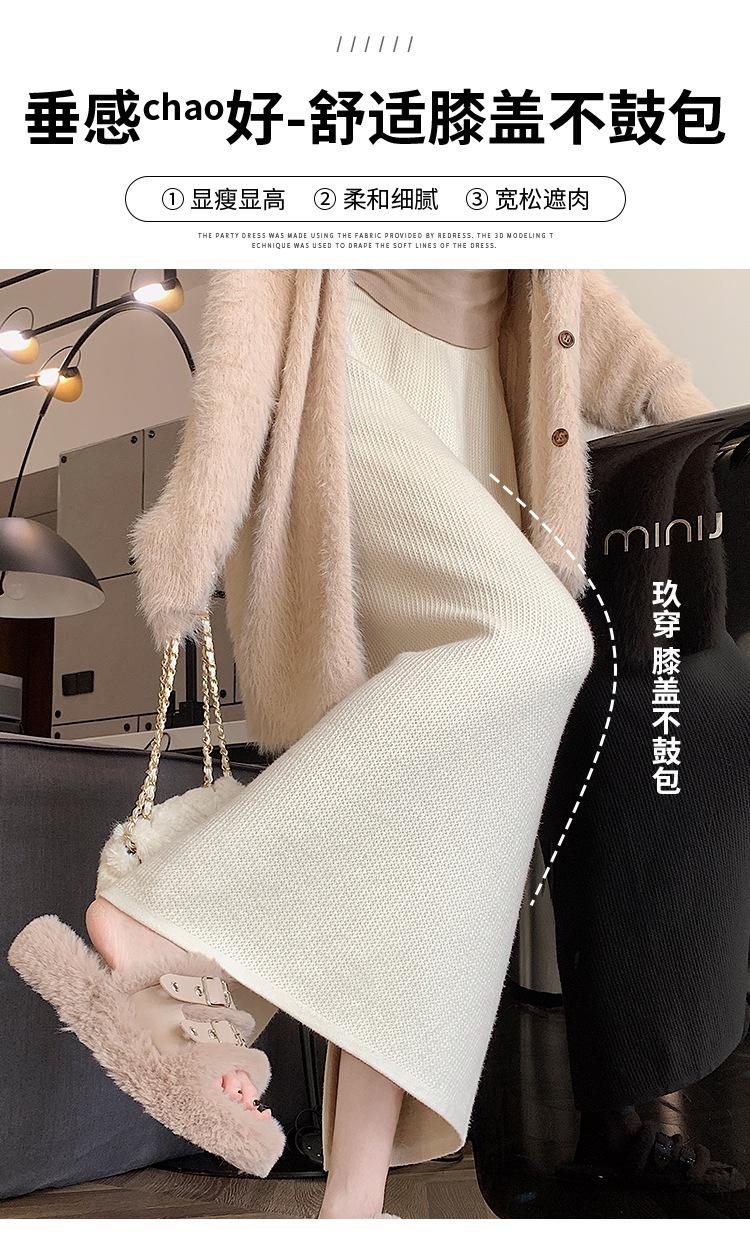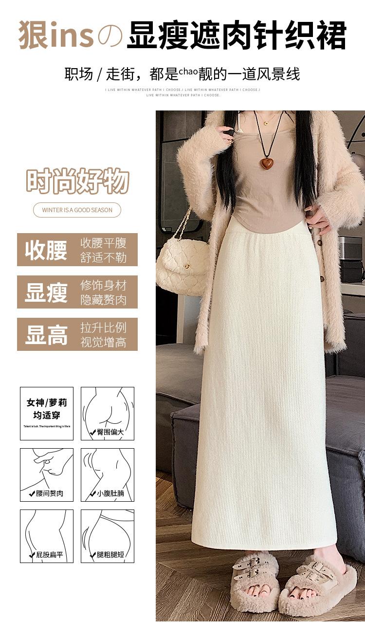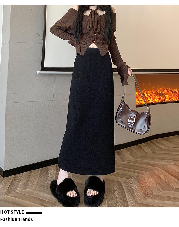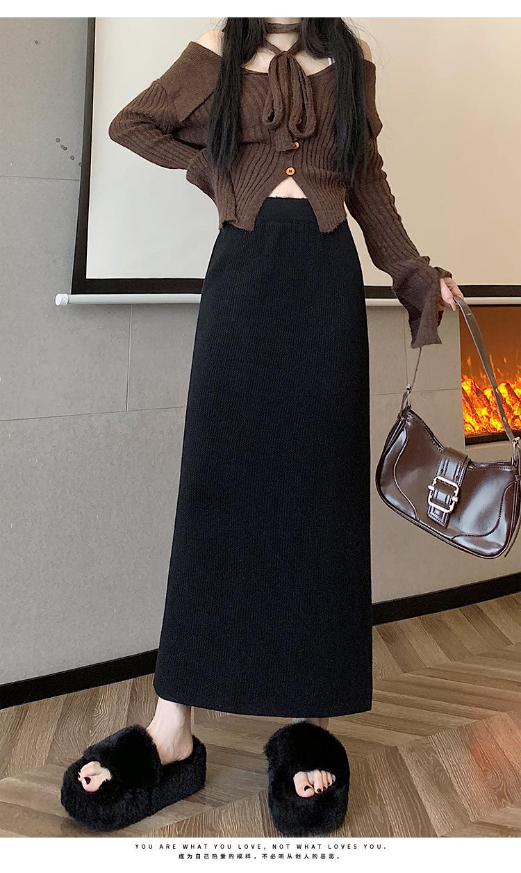 Falda tejida gruesa con forro polar para mujer otoño e invierno adelgazante línea A midi falda de cintura alta recta con abertura falda de un paso