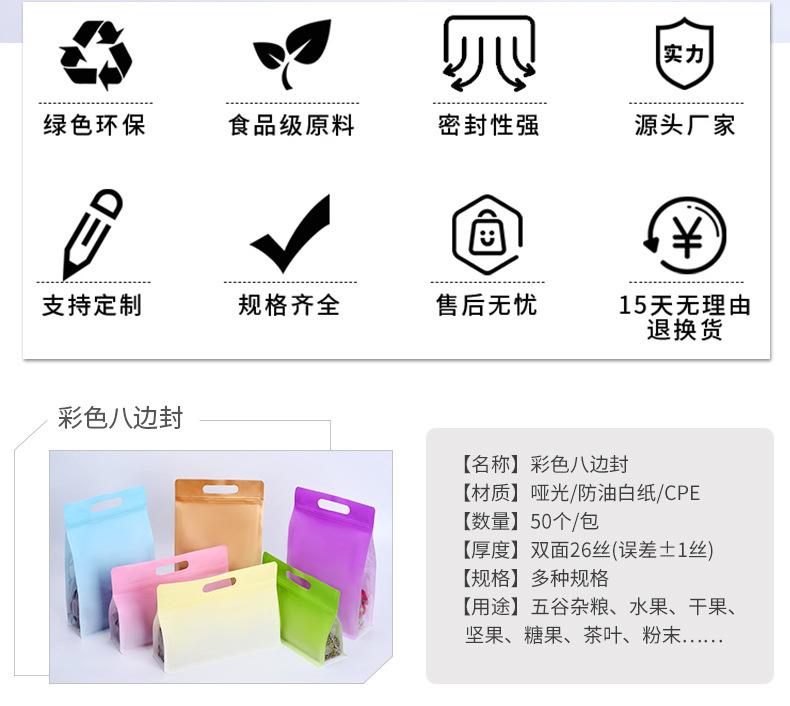 Bolsas de plástico degradables para alimentos, bolsas selladas de ocho lados, bolsas autosellables para té, bolsas selladas, bolsas para empaquetar bolsos