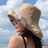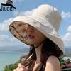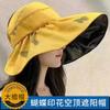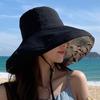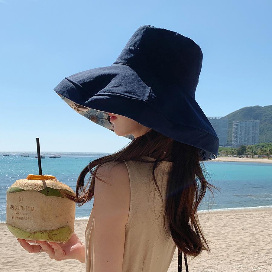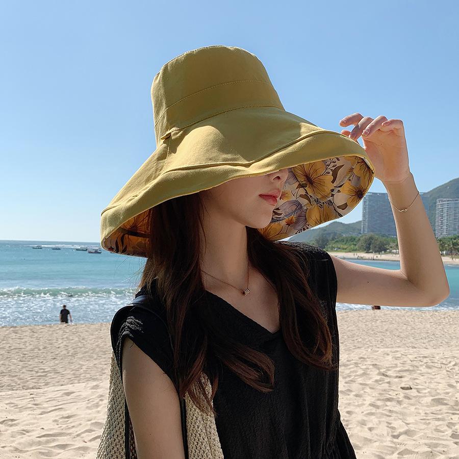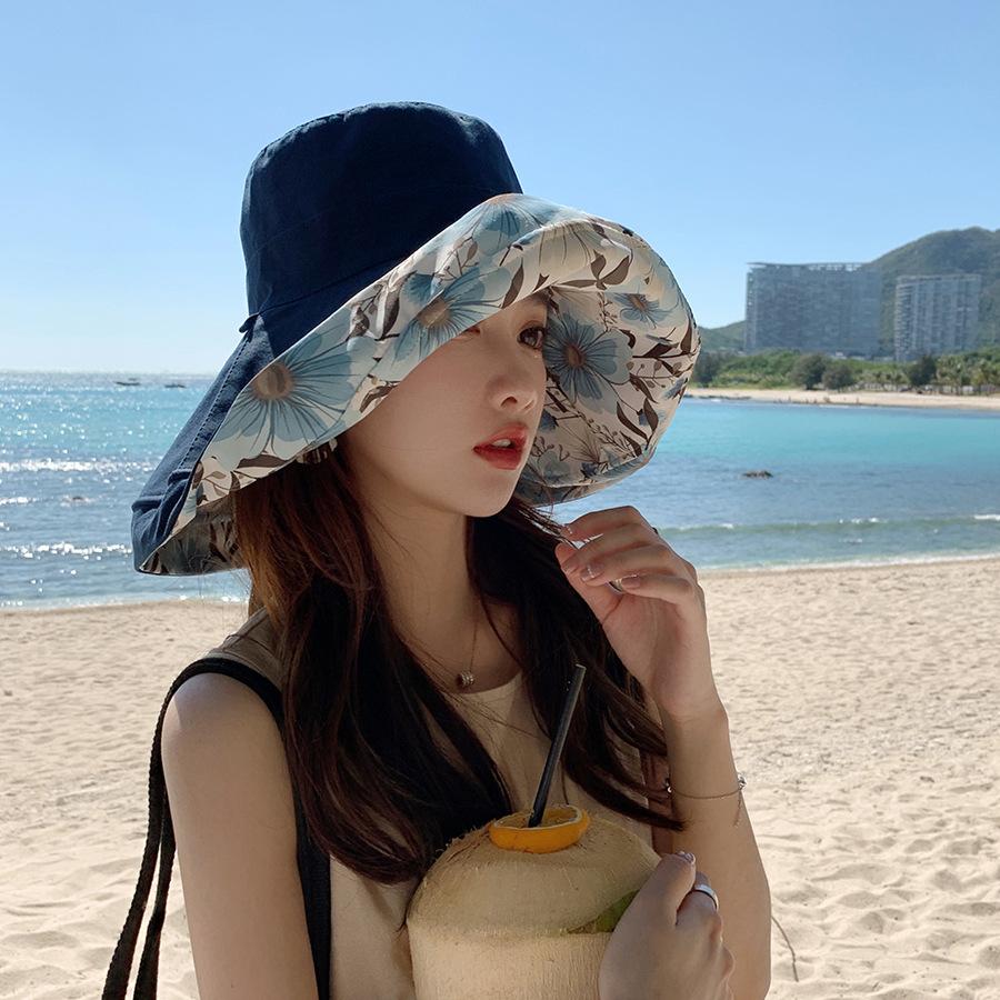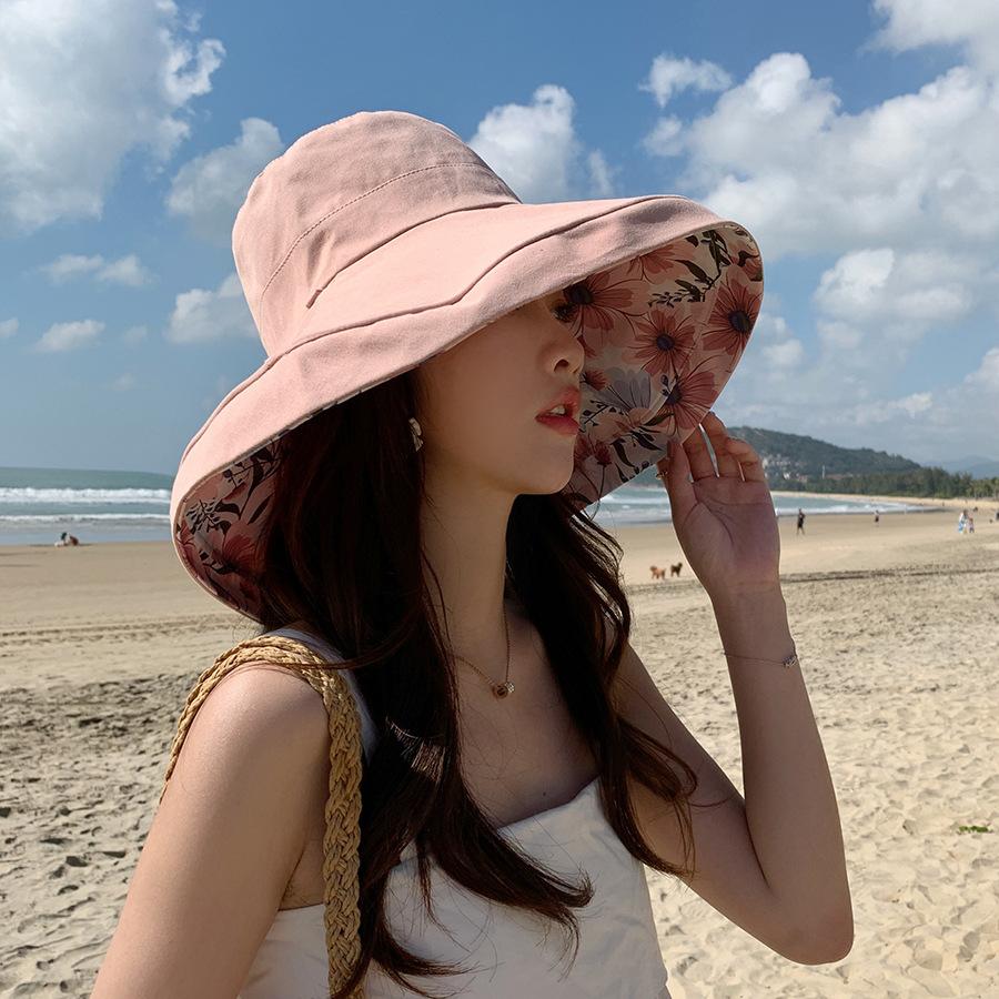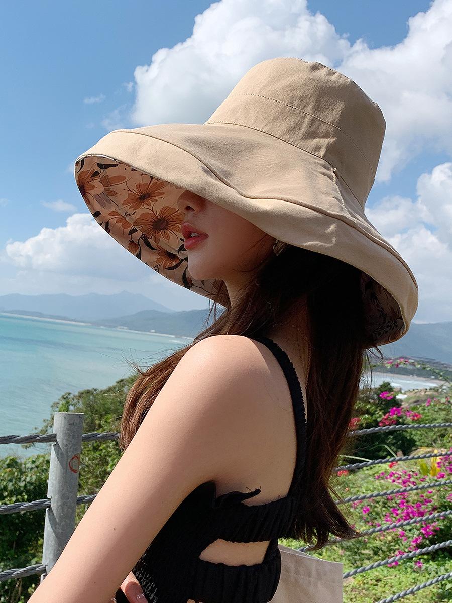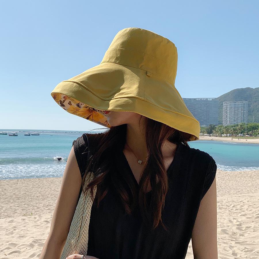 Sombrero de pescador coreano de verano nuevo estampado de doble cara para mujer de ala extra grande para protección solar UV