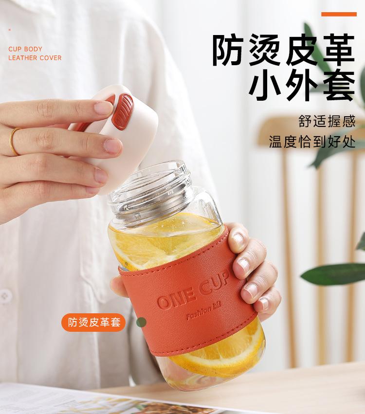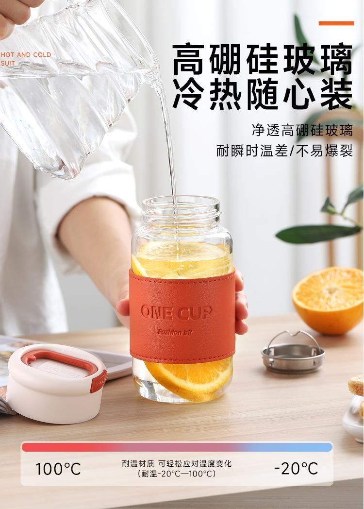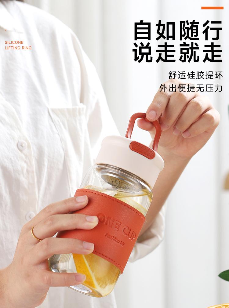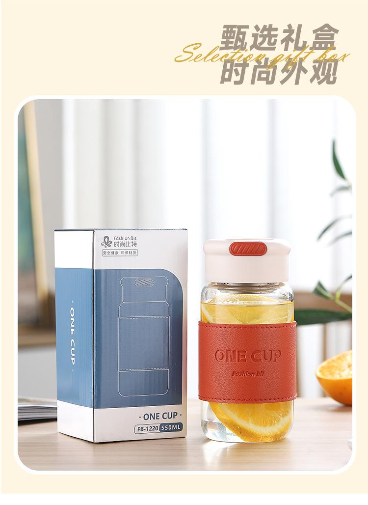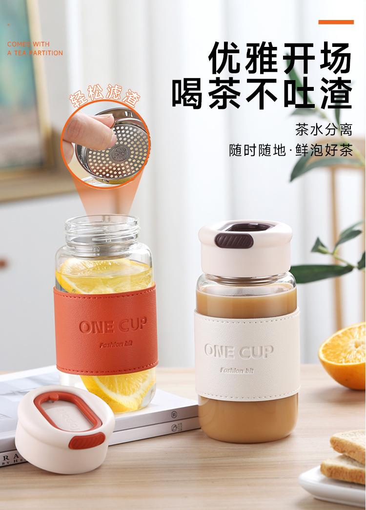 Nueva taza de agua de vidrio de alta calidad, moderna y sencilla, con separador de té, resistente al calor, anti-escaldaduras, práctica taza con logotipo impreso.