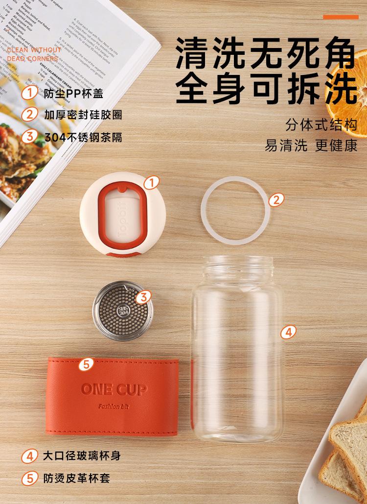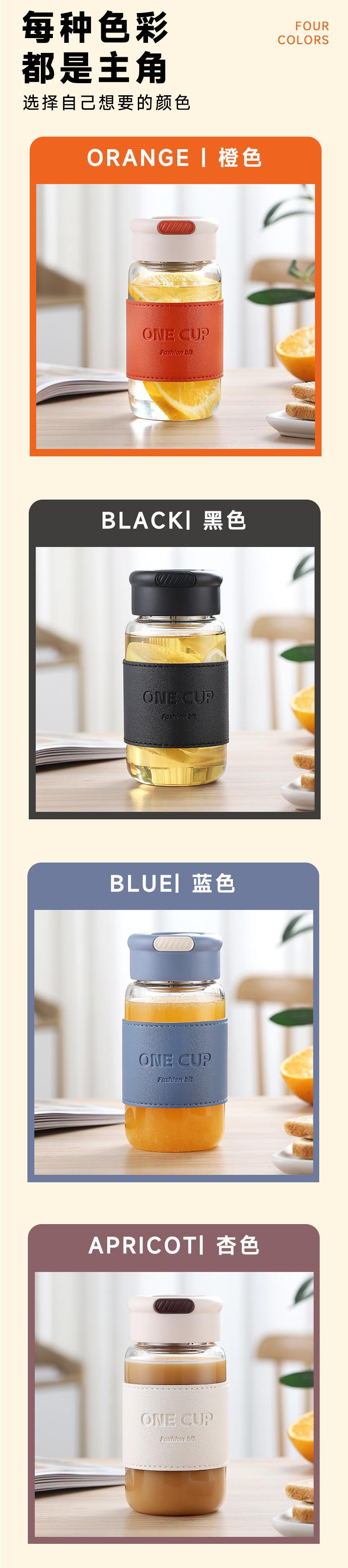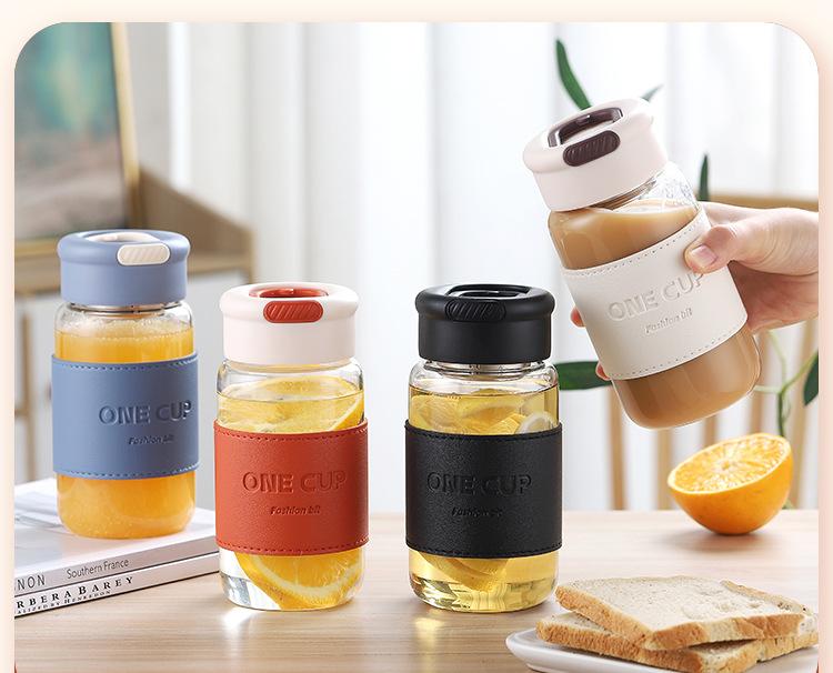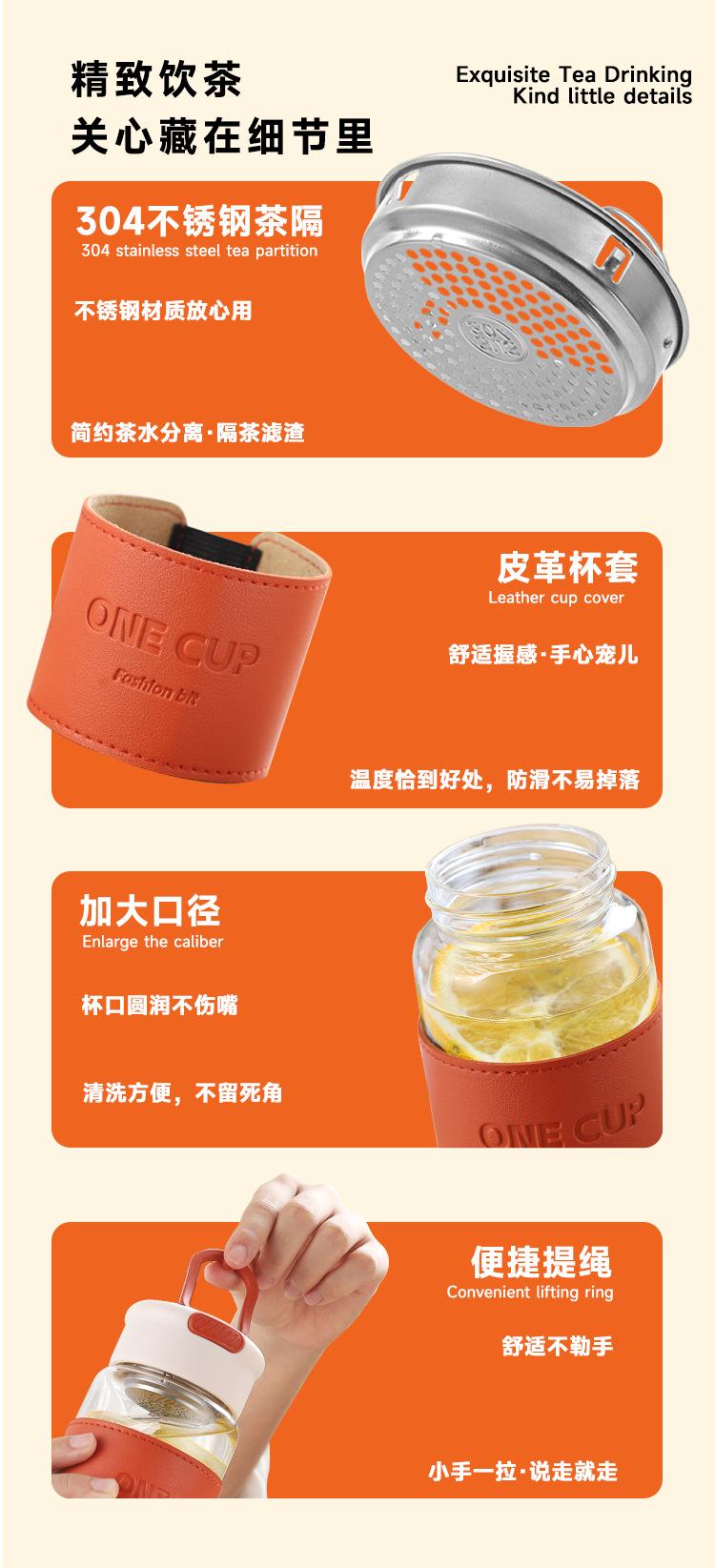 Nueva taza de agua de vidrio de alta calidad, moderna y sencilla, con separador de té, resistente al calor, anti-escaldaduras, práctica taza con logotipo impreso.