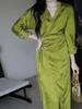 En Stock Primavera y Verano 2024 Nuevo Estilo Chino Estilo Nacional Ligero Cheongsam Mejorado Vestido de Satén de Encaje Diagonal de Alta Gama para Mujer