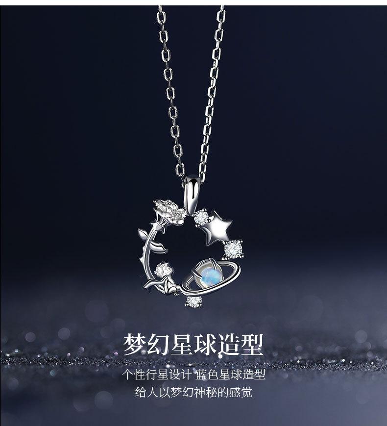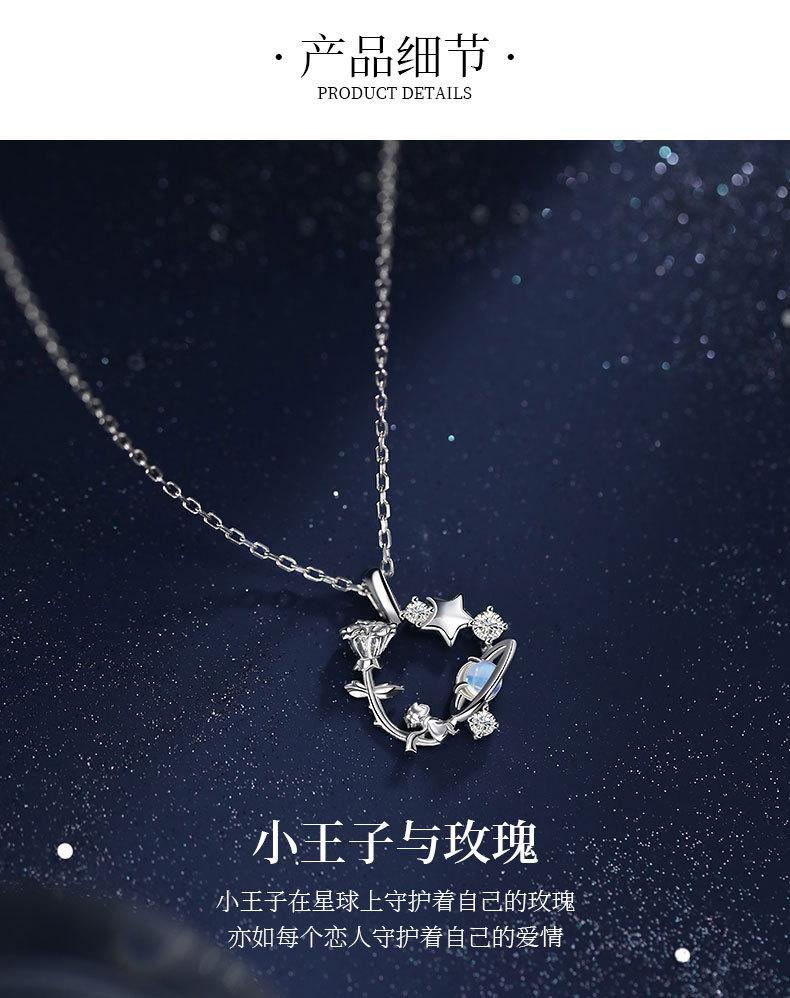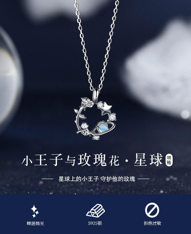 Collar de Plata Esterlina Rosa del Principito para Niñas, Nicho de Lujo Ligero, Colgante Articulado de Planeta, Regalo de Navidad para Novia