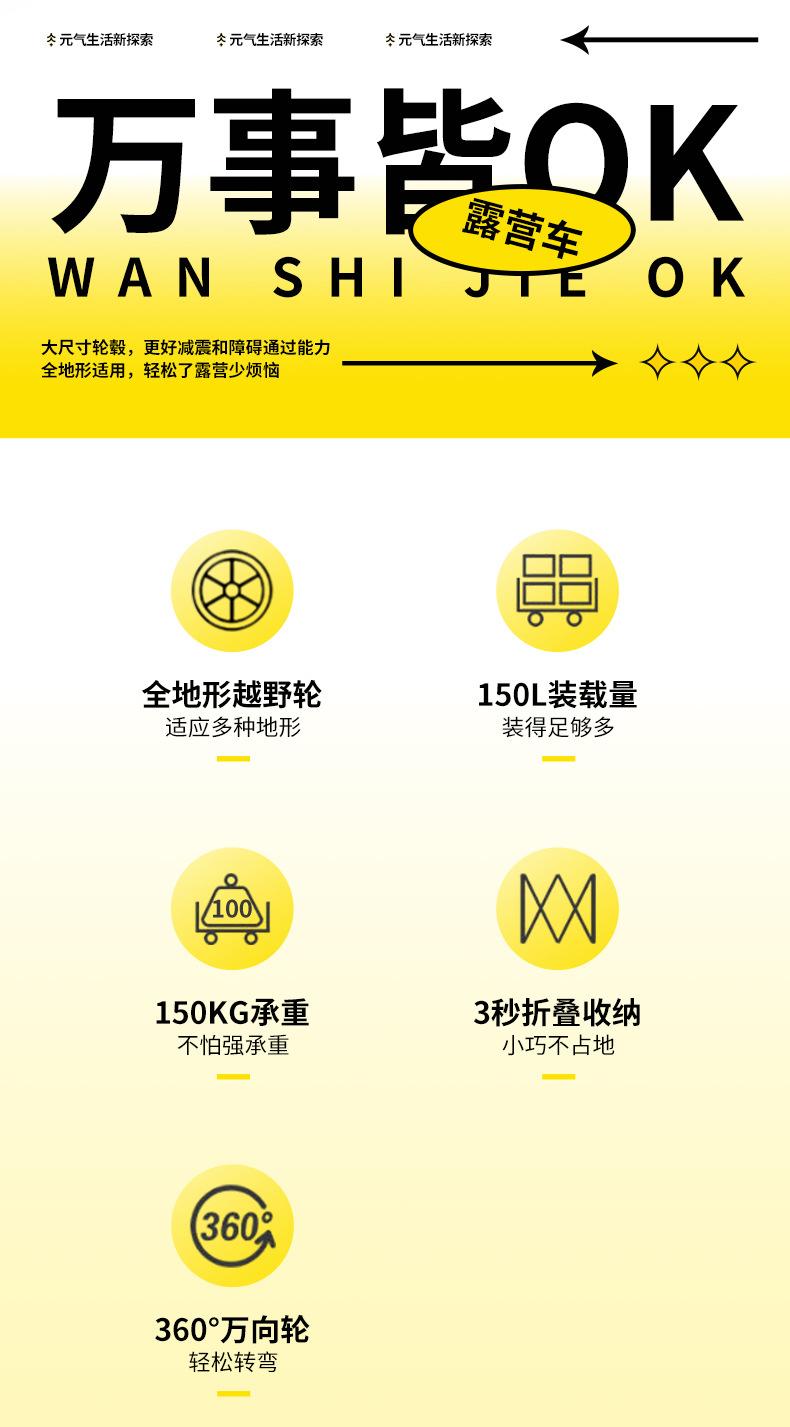 Carrito de camping plegable de 8 pulgadas para exteriores, carrito de campamento, coche de picnic, carrito de compras