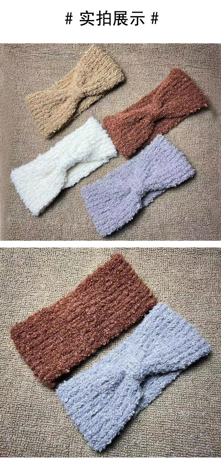 2025 Otoño e Invierno Estilo Ins Diadema Cálida Color Puro Protección para los Oídos Diadema con Lazo Bucle Terciopelo Deportes Lavado de Cara Diadema