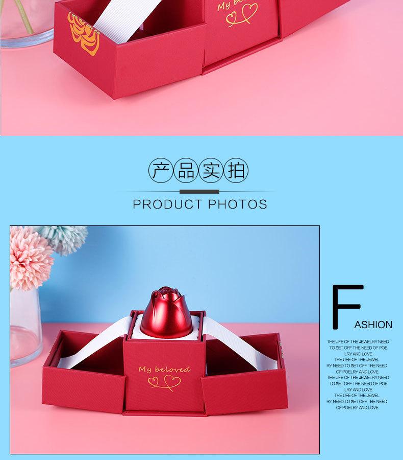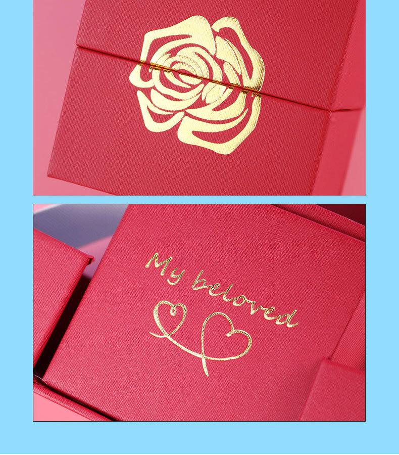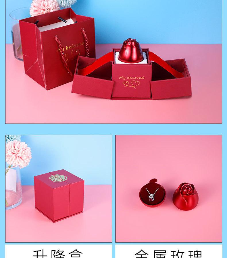 Joyero de metal con forma de rosa para San Valentín, joyero creativo con forma de rosa, caja de regalo con doble anillo abierto y collar.