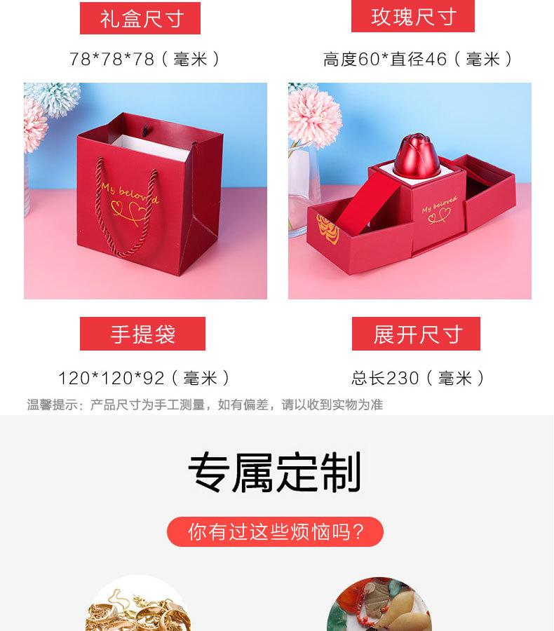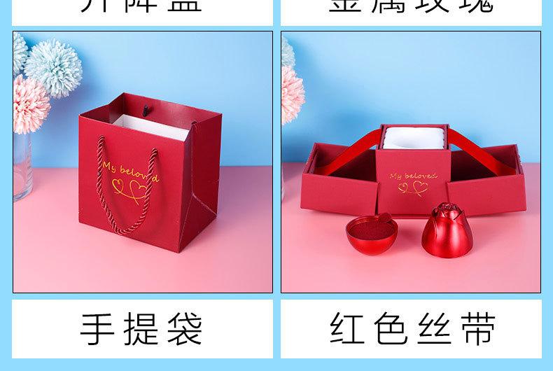 Red metal rose 46g; plastic embryo outer box + handbag + rose