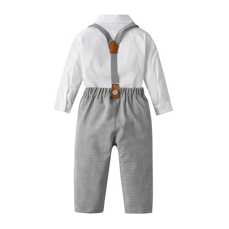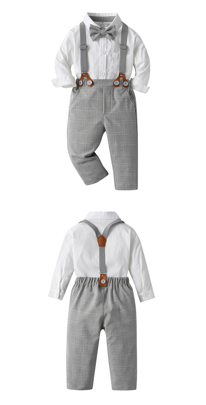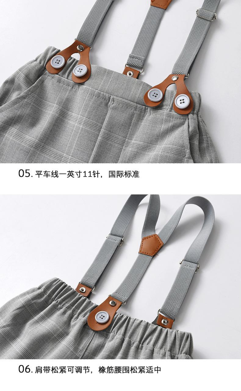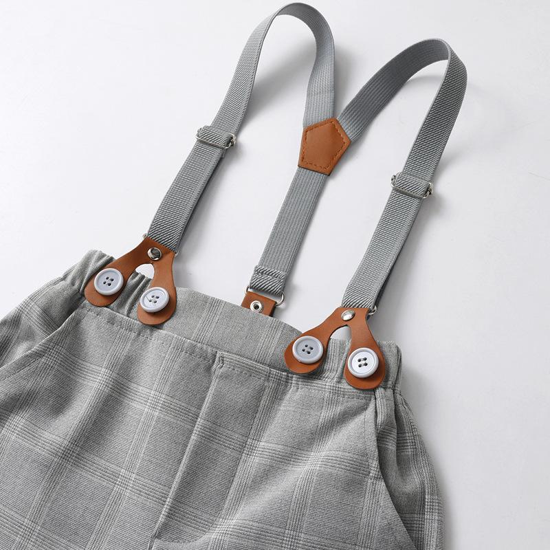 Ropa infantil transfronteriza, traje de caballero estilo occidental de primavera y otoño, ropa de otoño para niño, pantalones con tirantes a cuadros para bebé, traje de dos piezas para niño