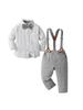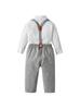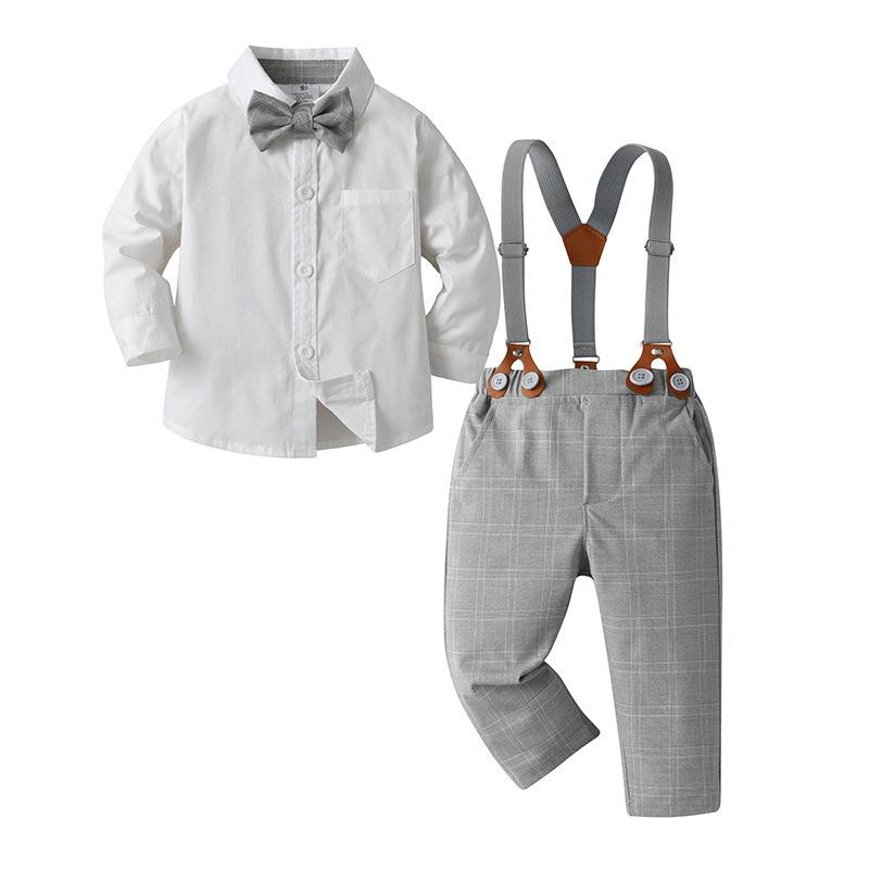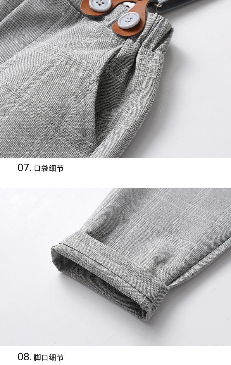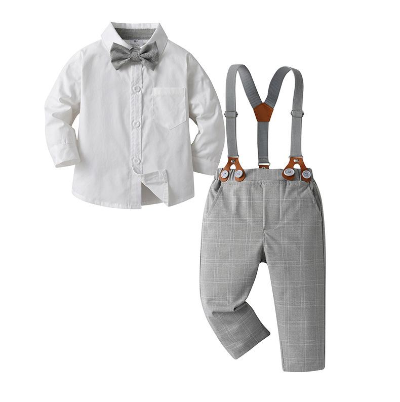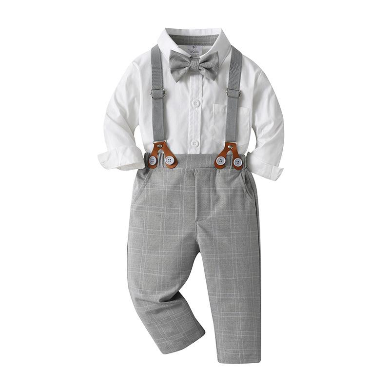 Ropa infantil transfronteriza, traje de caballero estilo occidental de primavera y otoño, ropa de otoño para niño, pantalones con tirantes a cuadros para bebé, traje de dos piezas para niño