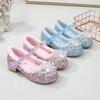 Zapatos de princesa para niñas, zapatos de terciopelo con cristales para niñas pequeñas, zapatos de invierno nuevos de Aisha azules, zapatos de tacón alto para niñas pequeñas y medianas.