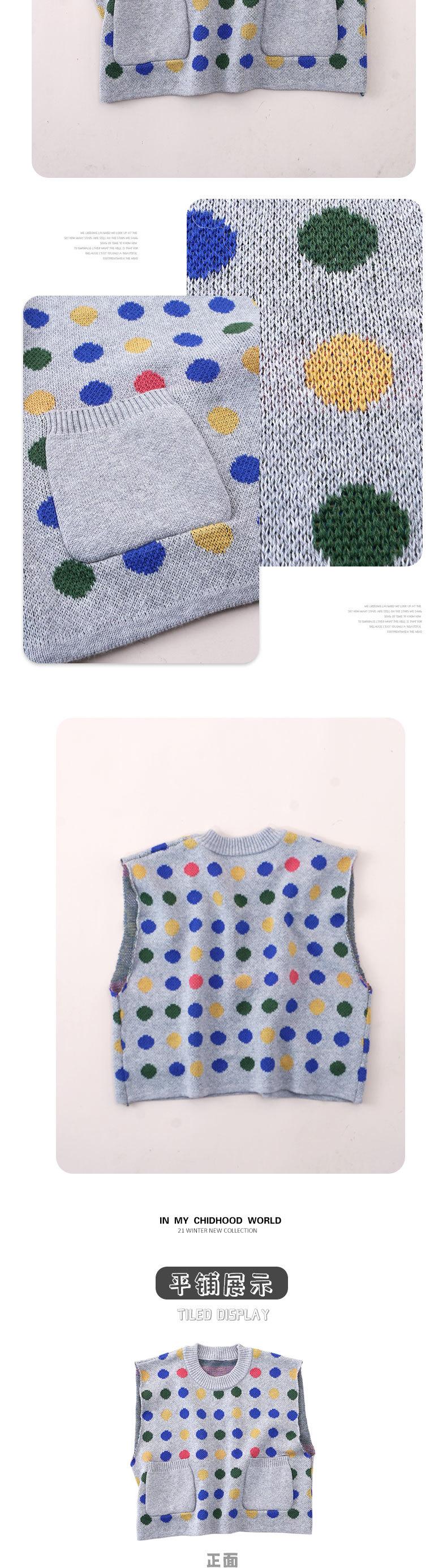 Suéter holgado de estilo coreano para niños, chaleco de lunares con cuello redondo, primavera 2024