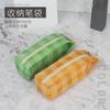 Estuche para lápices a cuadros de gran capacidad para estudiantes, sencillo, de tela Oxford, impermeable, pequeño, para guardar artículos frescos