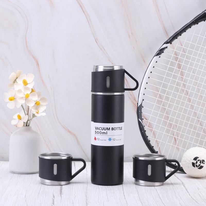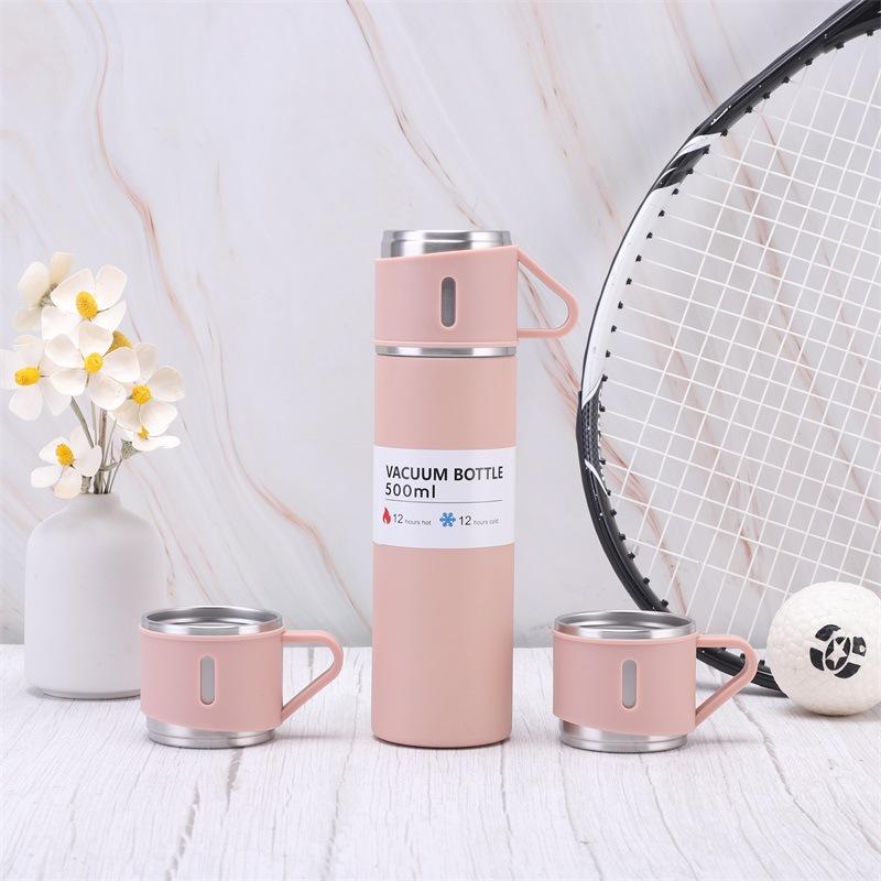 Nuevo termo de acero inoxidable 304, una taza, tres tapas, para exteriores, portátil, recto, juego de regalo