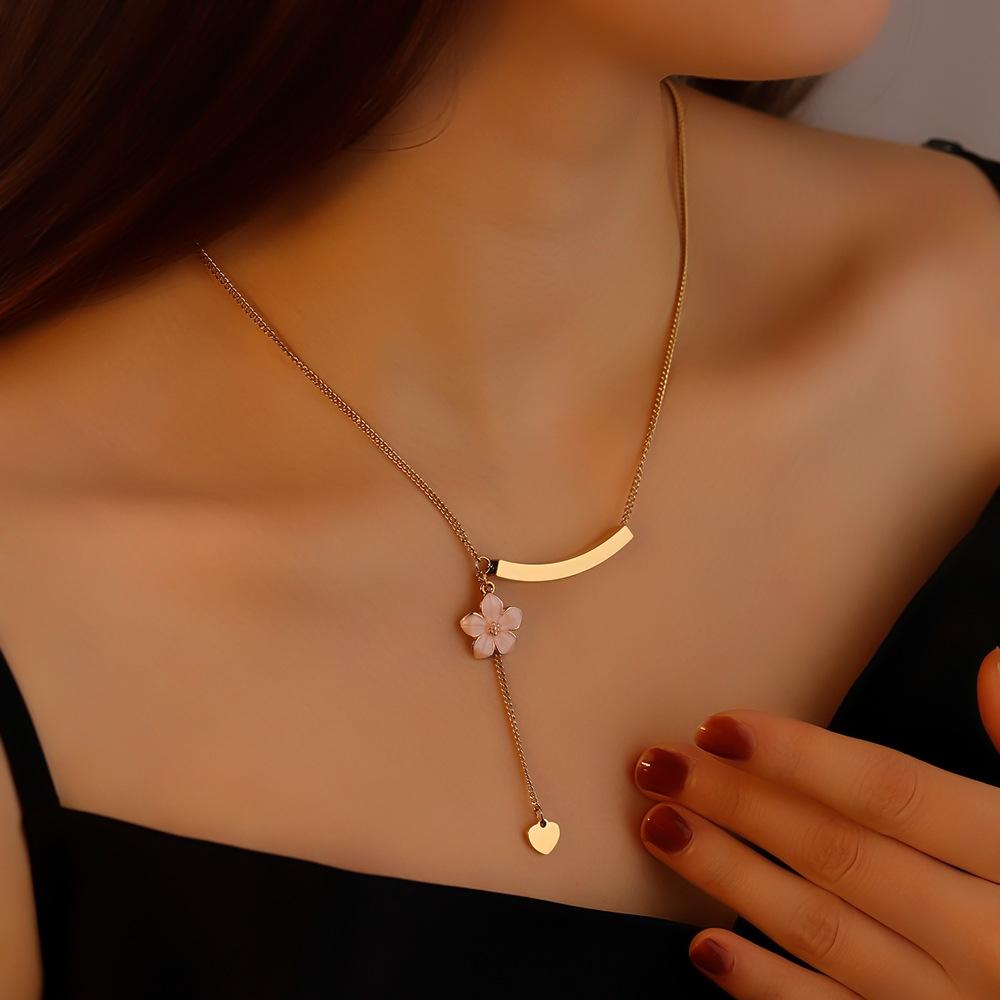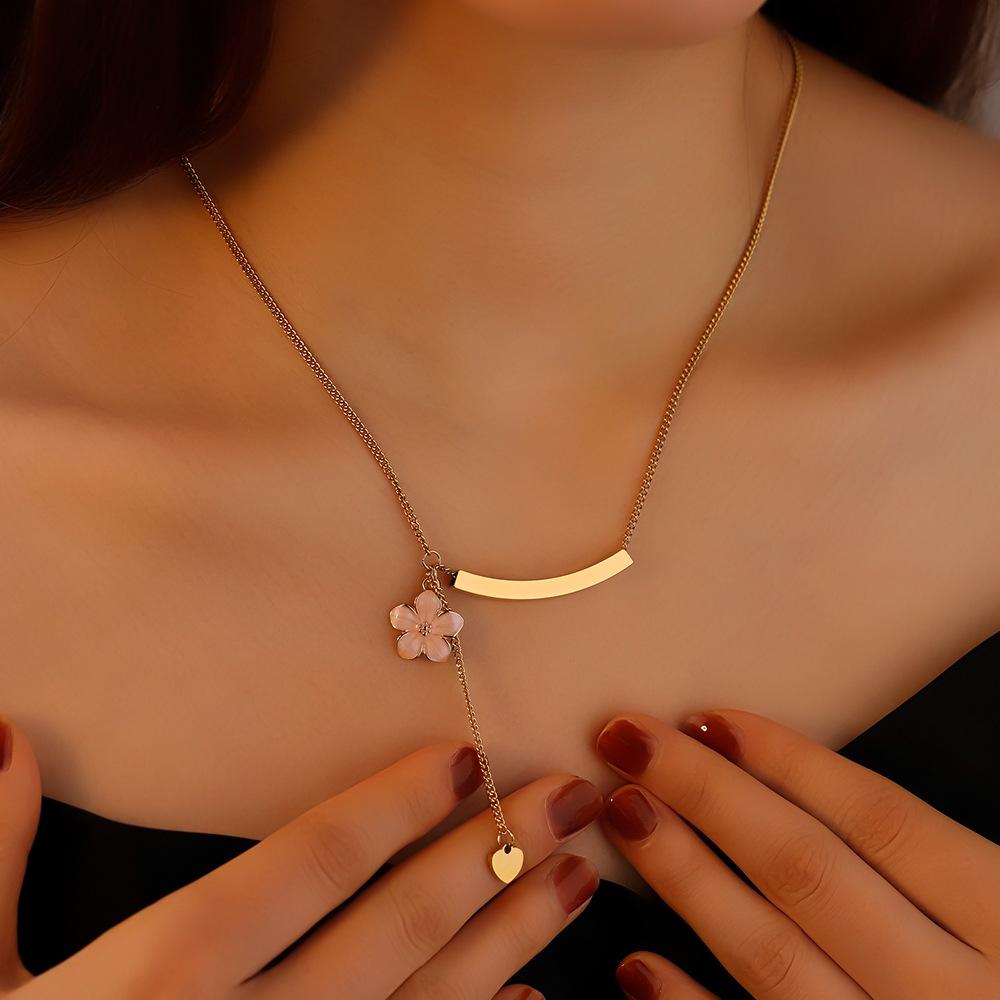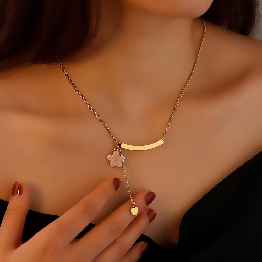 Nuevo collar de clavícula con diseño de nicho de Amazon, con sonrisa de flor, colgante de cadena de clavícula con personalidad femenina que combina con todo.