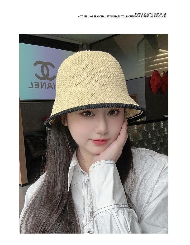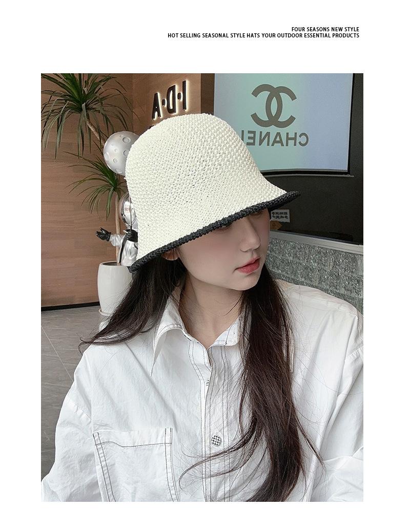 C3888 Fine-grain Corned Straw Hat Black White Edge, C3888 Fine brim color matching straw hat white black edge,...