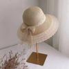 C3888 Fine-grain Cornice Straw Hat Black White Edge