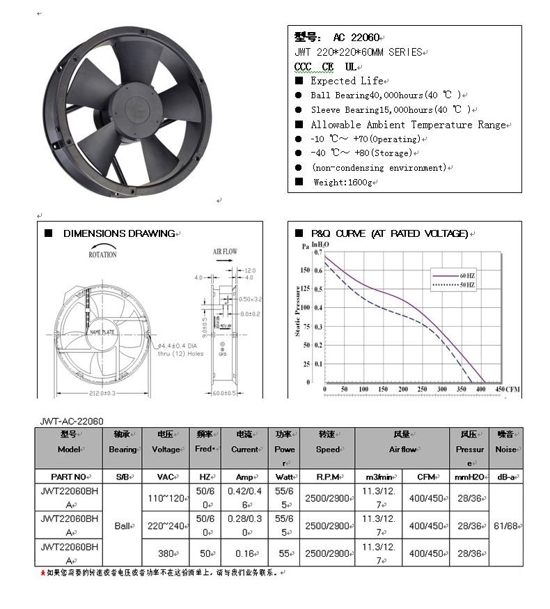 Ventilador de CA de bola AC22060, suministro directo de fábrica, 220 V, 380 V, chasis, gabinete eléctrico, ventilador de flujo axial, ventilador de refrigeración.