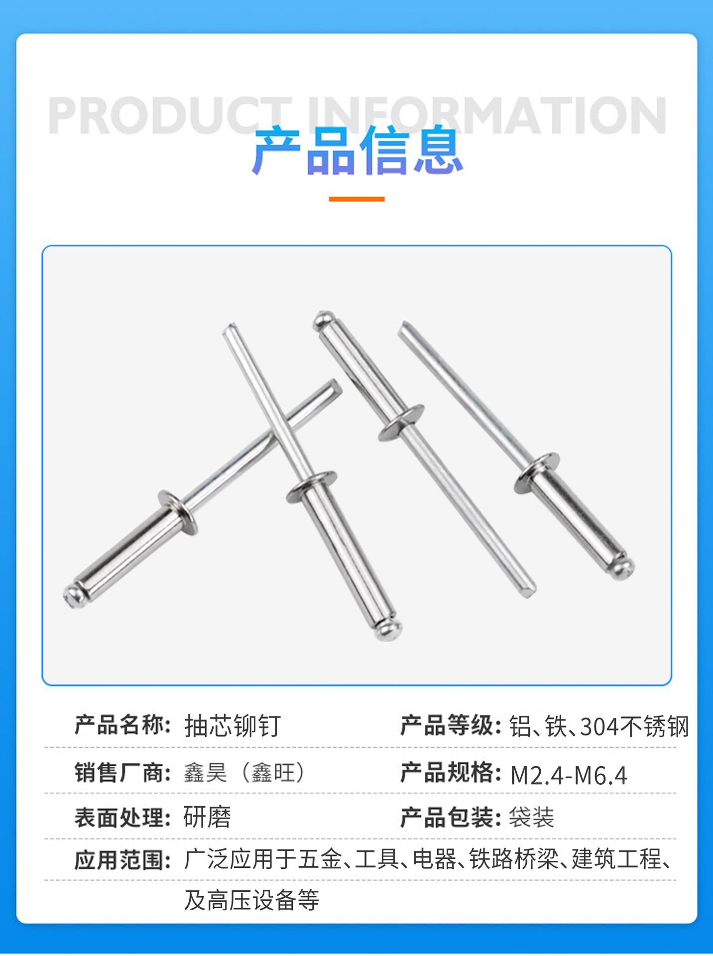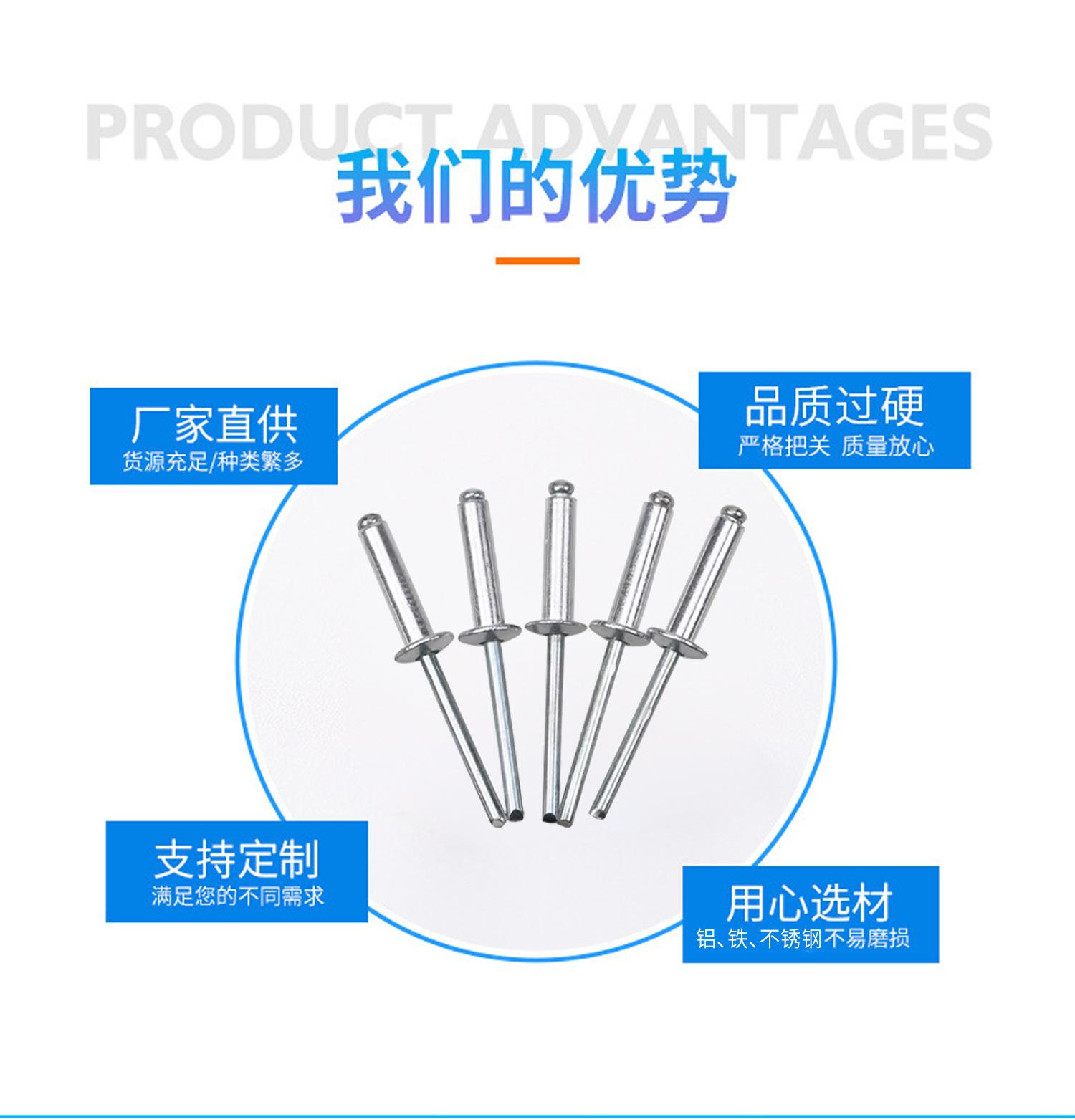 Remaches sin núcleo, Remaches de cabeza redonda plana tipo abierto, Remaches de aluminio sin núcleo de cabeza grande, Remaches especiales para remachar, Venta al por mayor de fabricantes