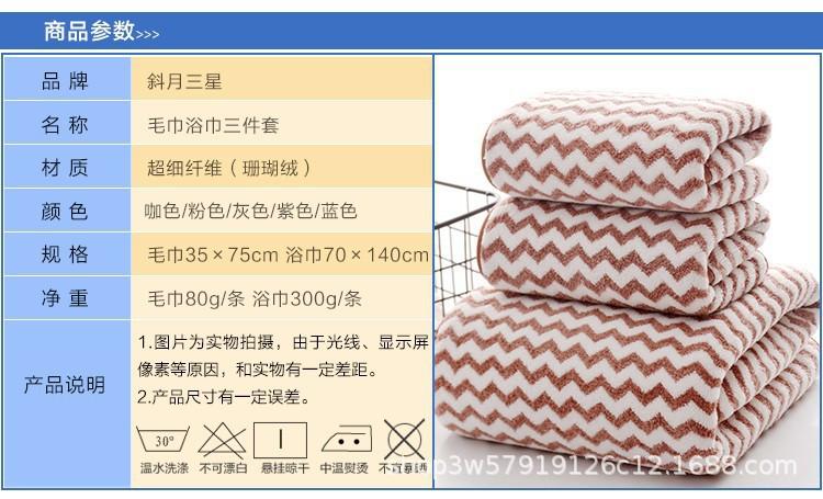 Set de Toalla de Baño de Terciopelo Coral de Tres Piezas, Suave, Absorbente, No Suelta Pelusa, Toalla Facial para Mujer, Logotipo Bordado, Venta al por Mayor Personalizada, Playa