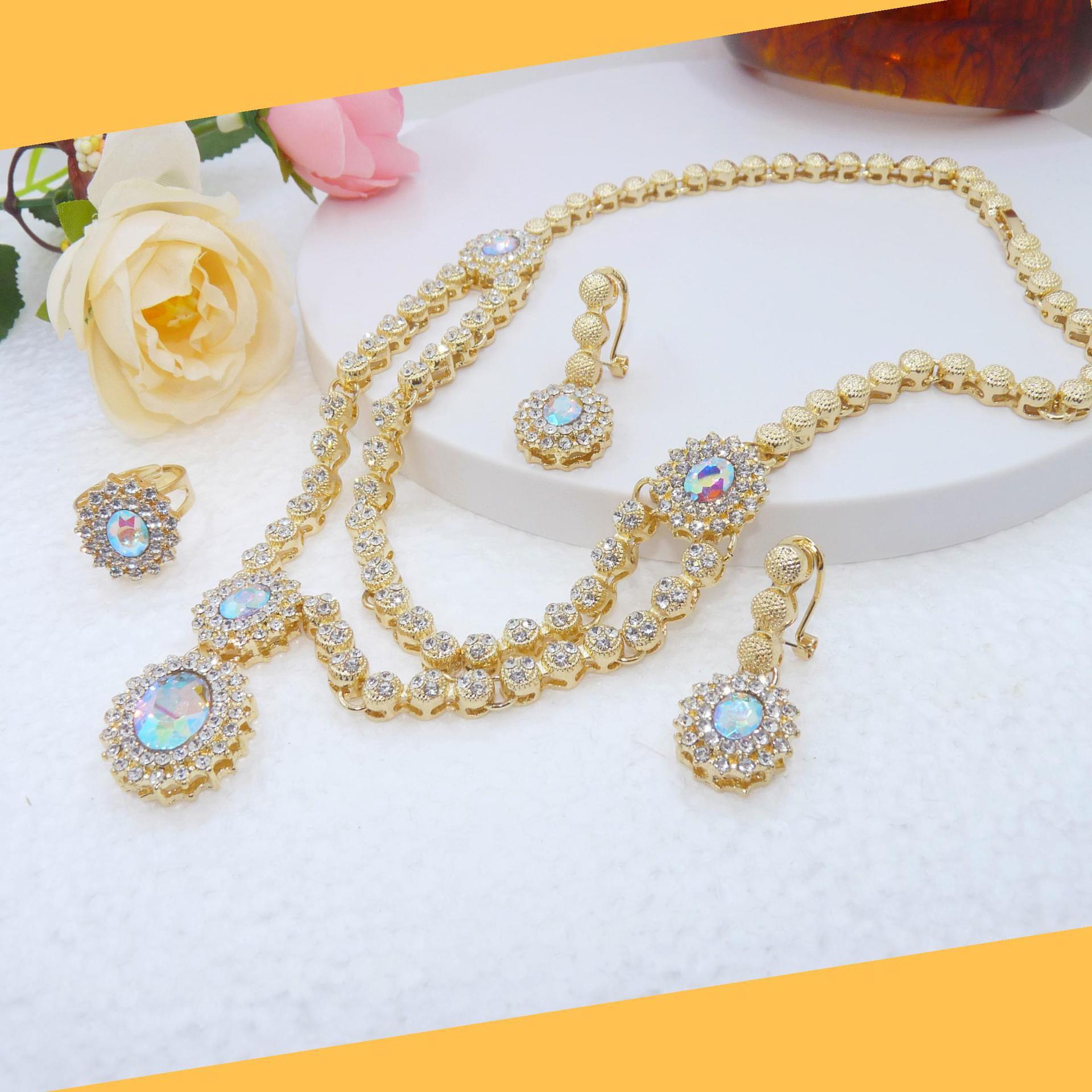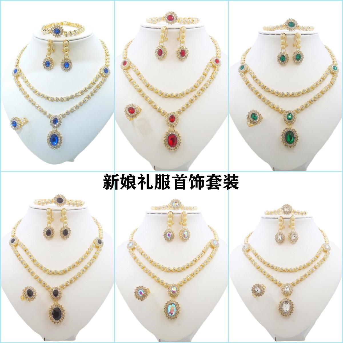 Accesorios de joyería para vestido de novia, incrustaciones de circonita, collar de boda a juego multicolor, joyería para traje, venta al por mayor