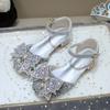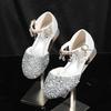 Zapatos de cristal para niñas, suela blanda, tacones altos, moda de verano, zapatos de cuero para niñas, zapatos de princesa