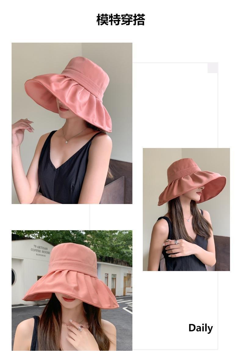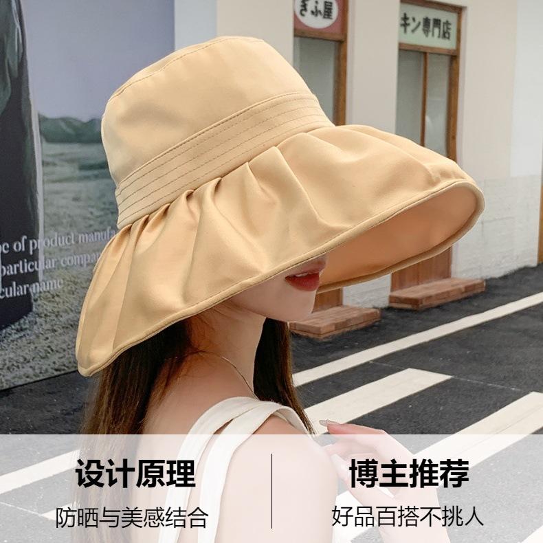 Sombrero Coreano de Primavera y Verano de Ala Ancha para Protección Solar para Mujer Sombrero de Sol Coreano con Cubierta Facial para Exteriores Anti-UV Sombrero de Pescador Moderno