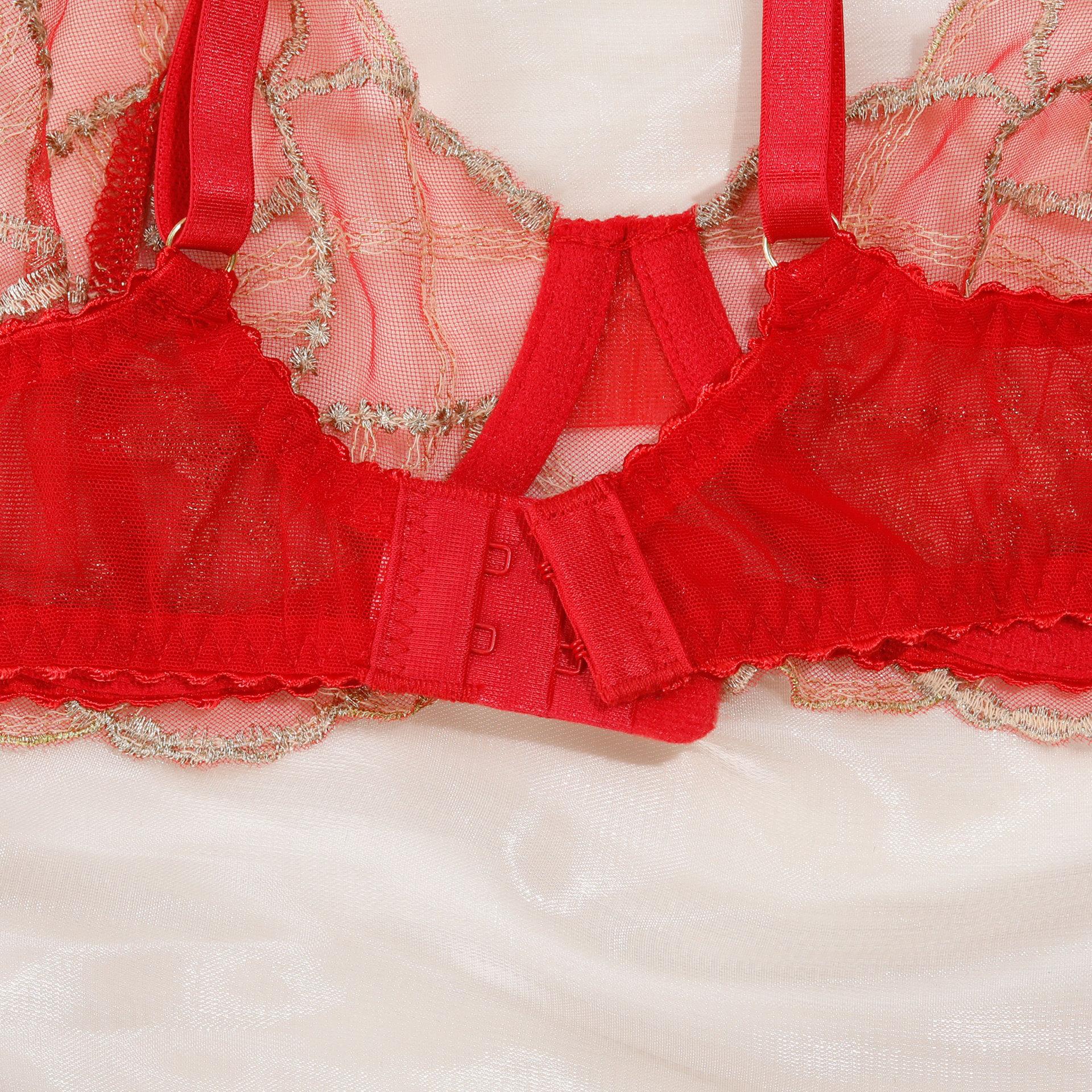 Europeo y Americano Exportación Anillo de Acero Push-Up Bordado Perspectiva Tentación Liguero Sexy Lencería Moldeadora de Cuerpo Set Dividido Ls1549