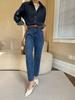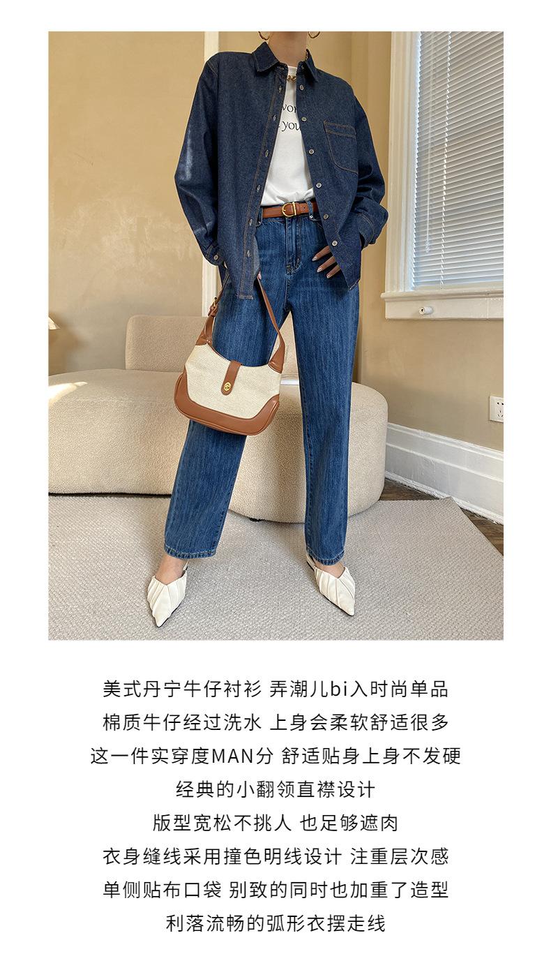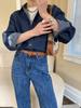 Sinan mezclilla americana camisa de mezclilla con pespuntes contrastantes diseño para capas otoño e invierno 2023 nuevo estilo Sn2746
