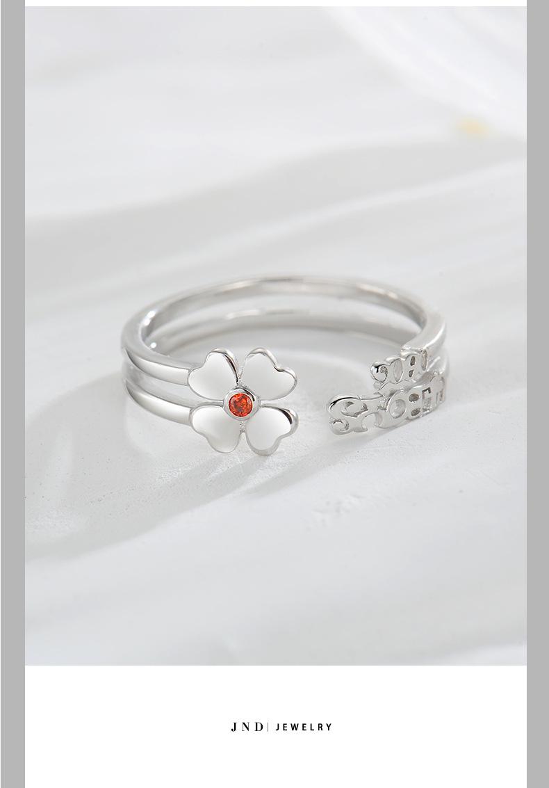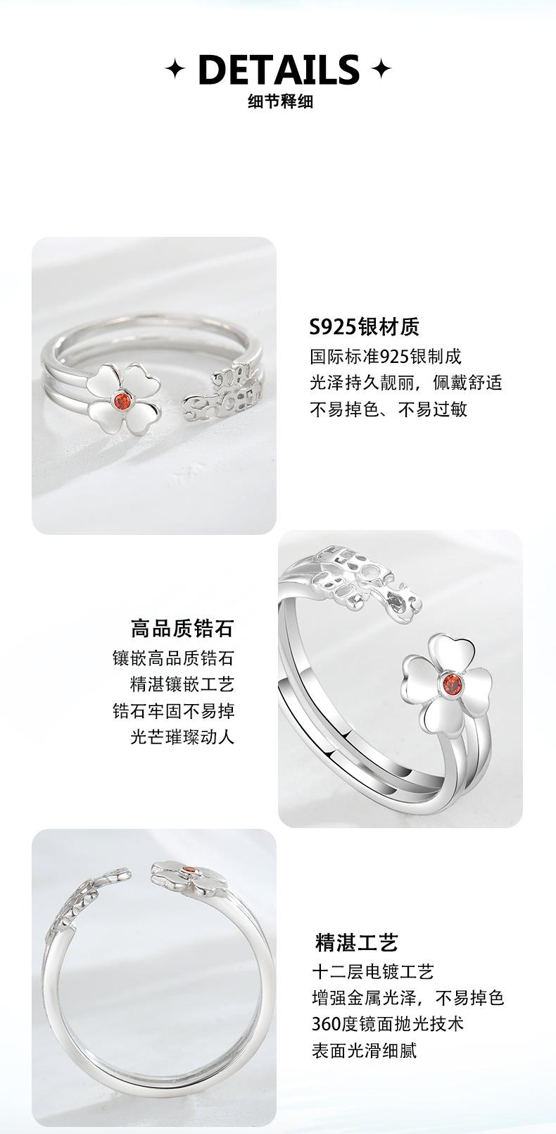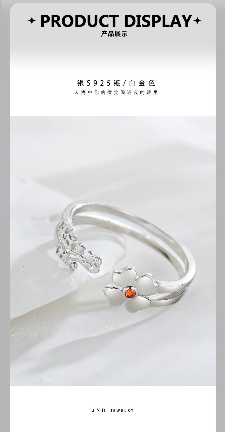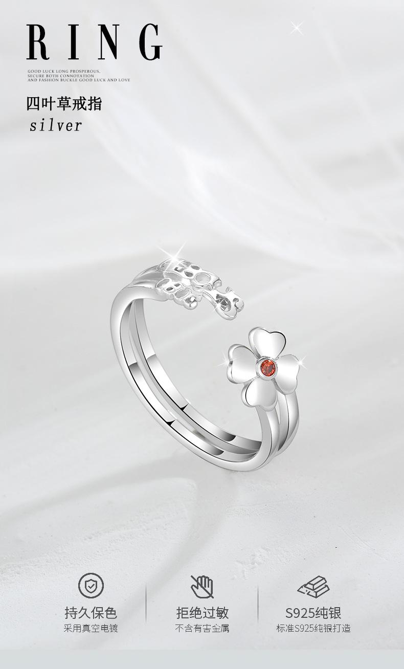 Anillo abierto de trébol de nuevo estilo en plata esterlina S925, elegante y sencillo, regalo de cumpleaños para novia.