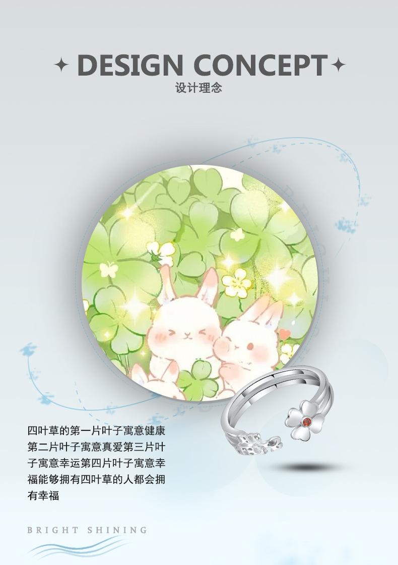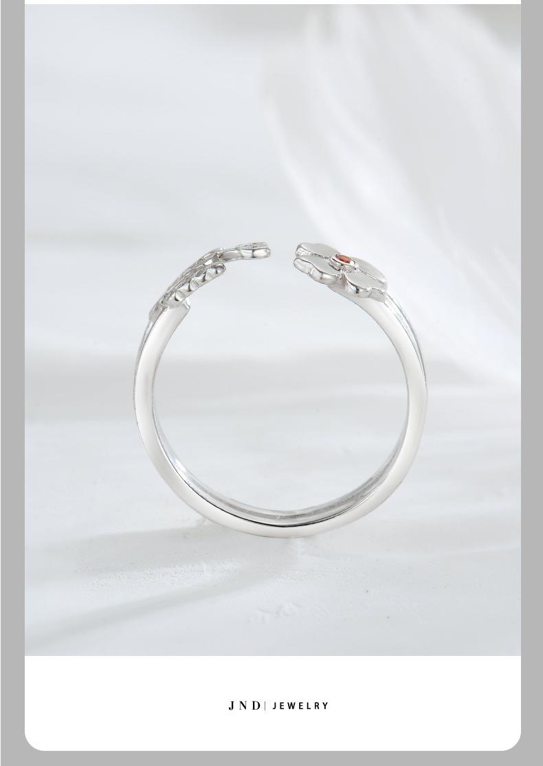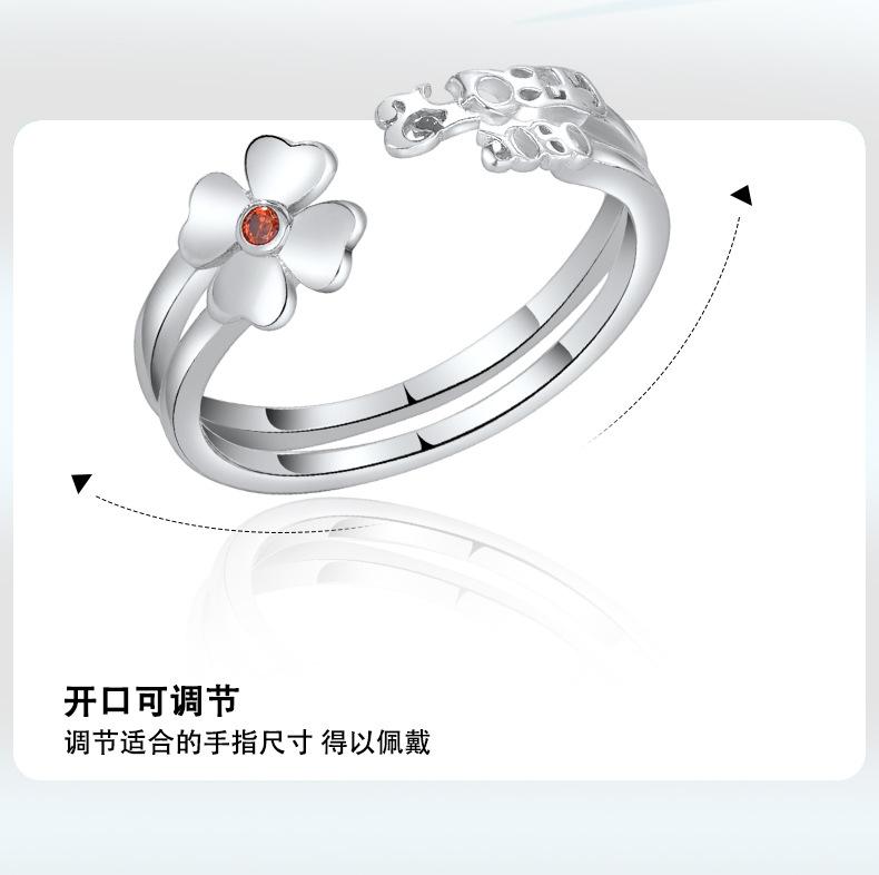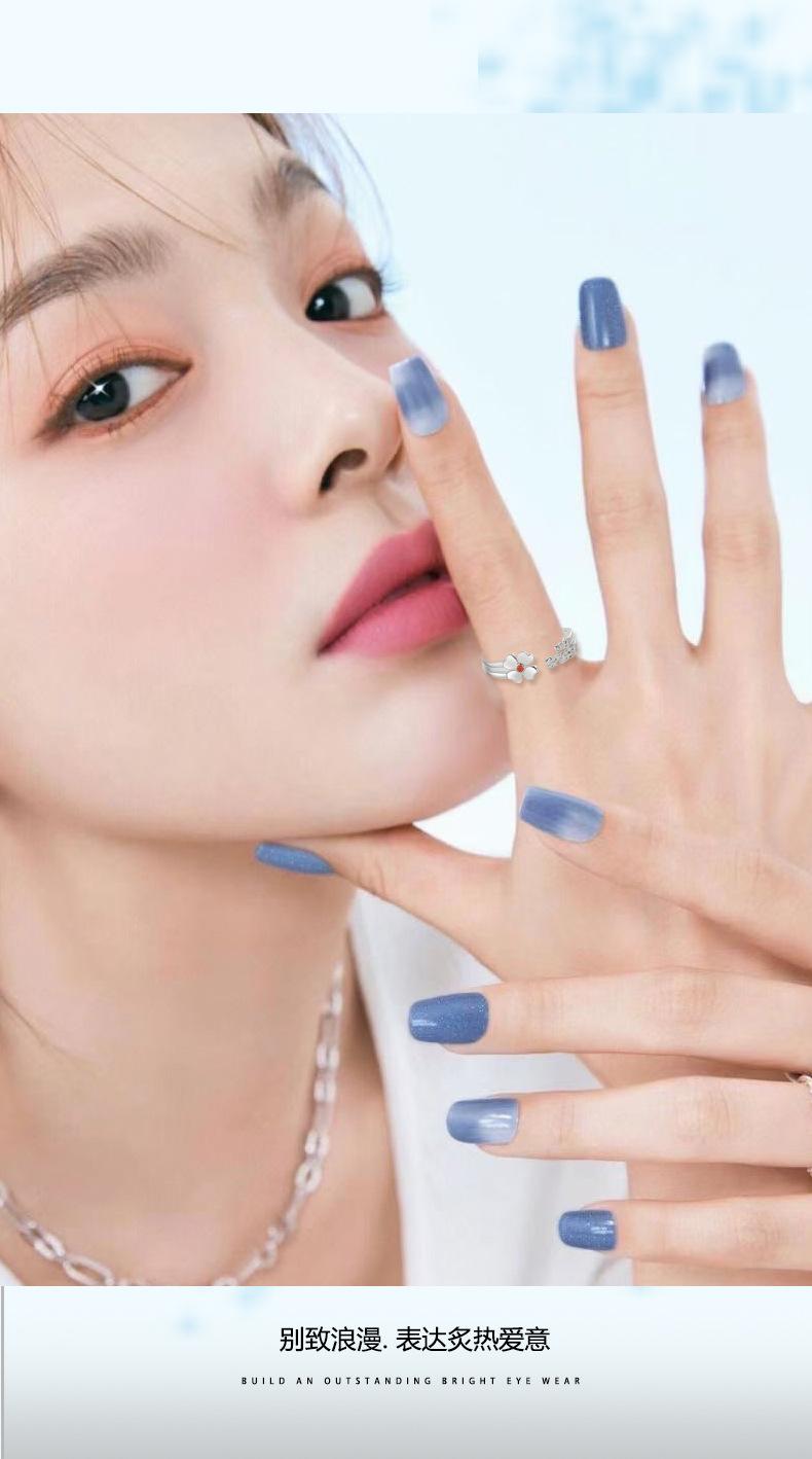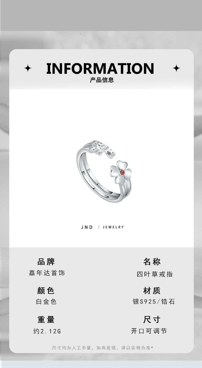 Anillo abierto de trébol de nuevo estilo en plata esterlina S925, elegante y sencillo, regalo de cumpleaños para novia.