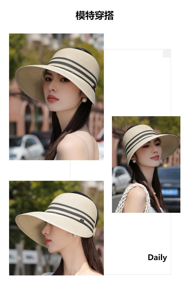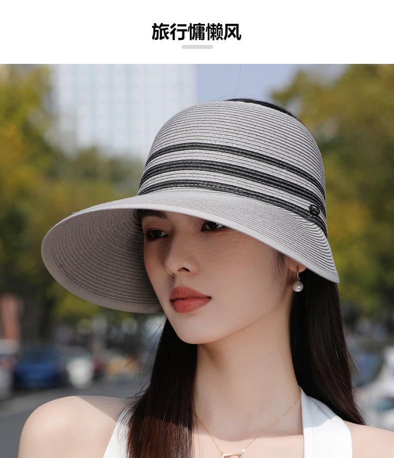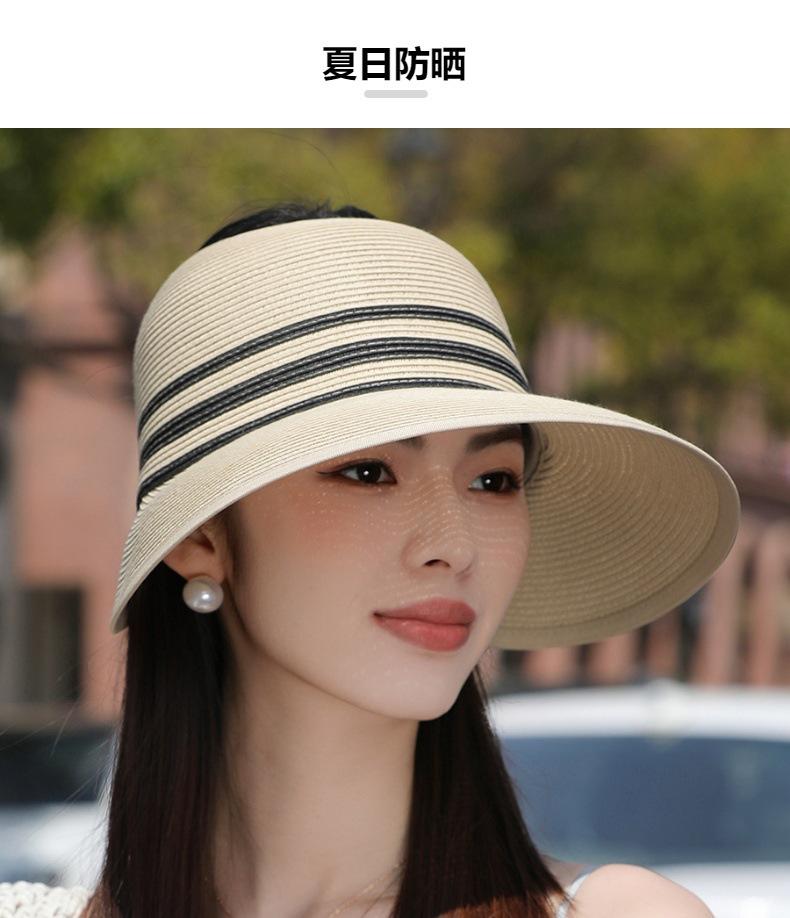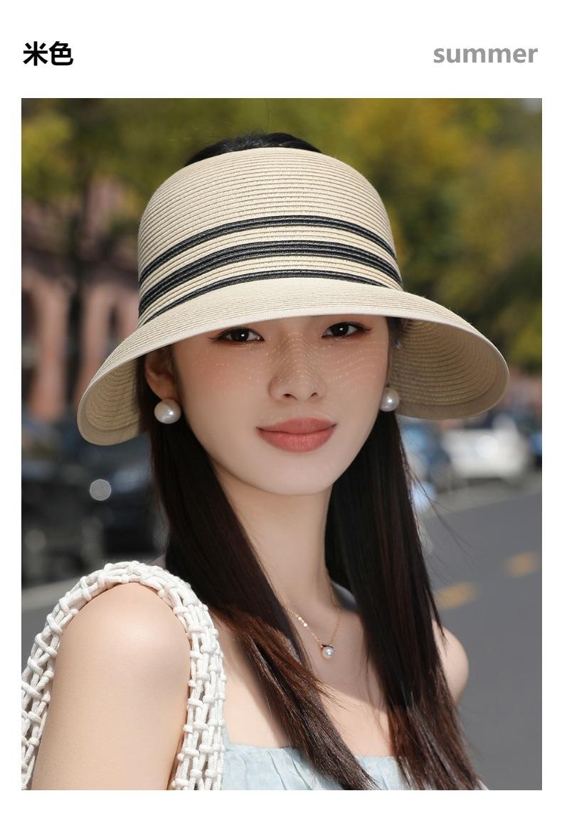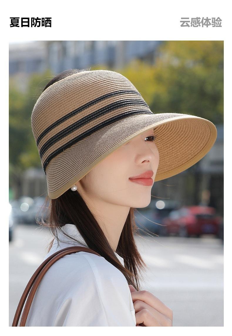 Sombrero de paja con ala grande y parte superior vacía para mujer, sombrero de playa para viaje de verano, plegable, sencillo y moderno, estilo coreano