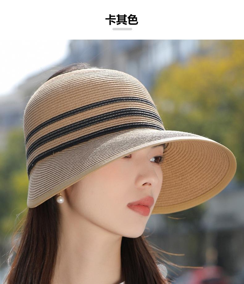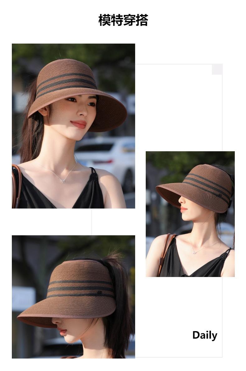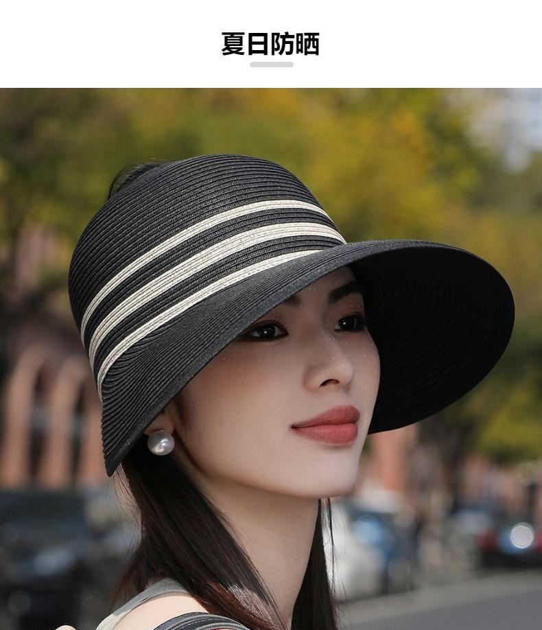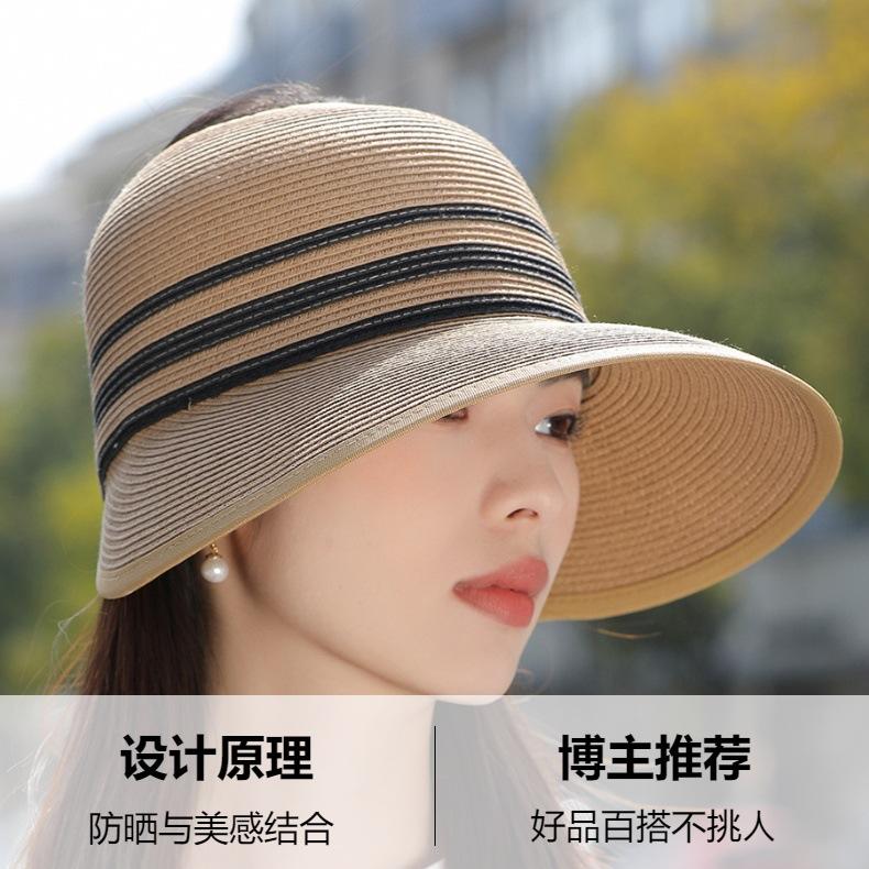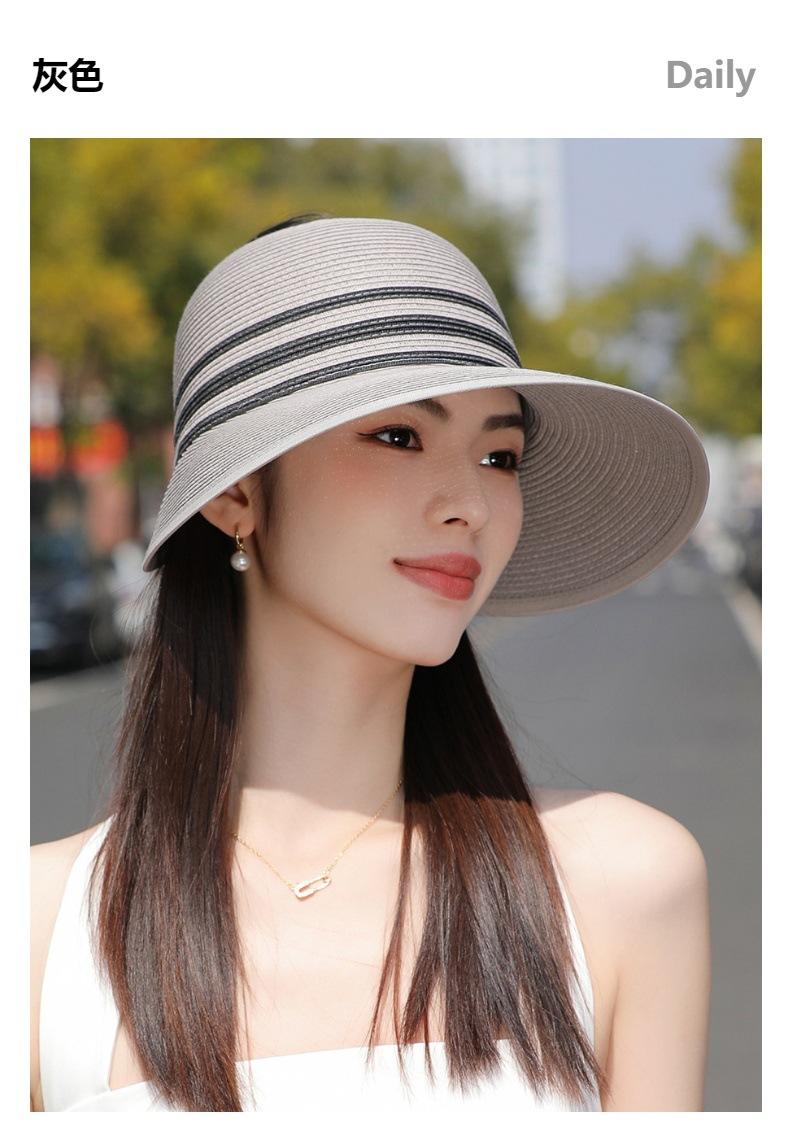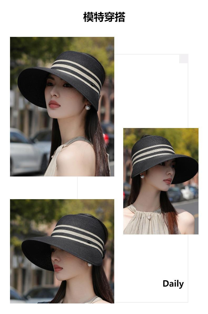 Sombrero de paja con ala grande y parte superior vacía para mujer, sombrero de playa para viaje de verano, plegable, sencillo y moderno, estilo coreano