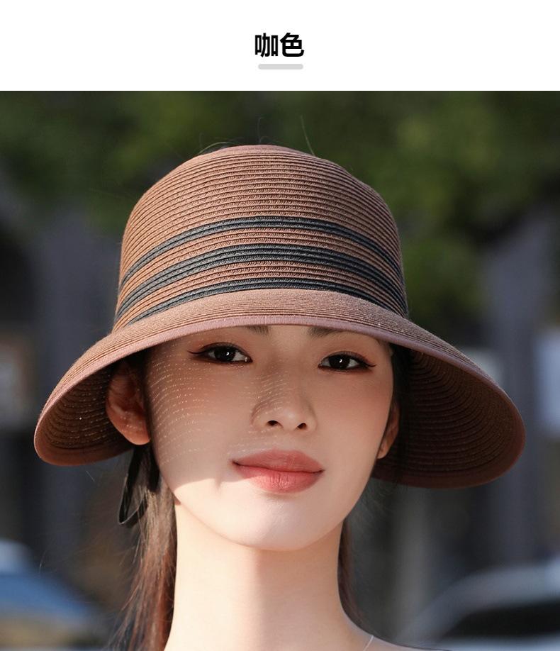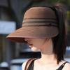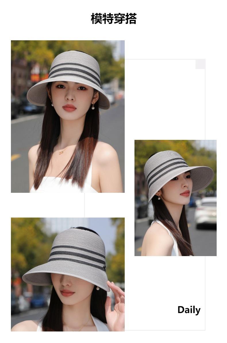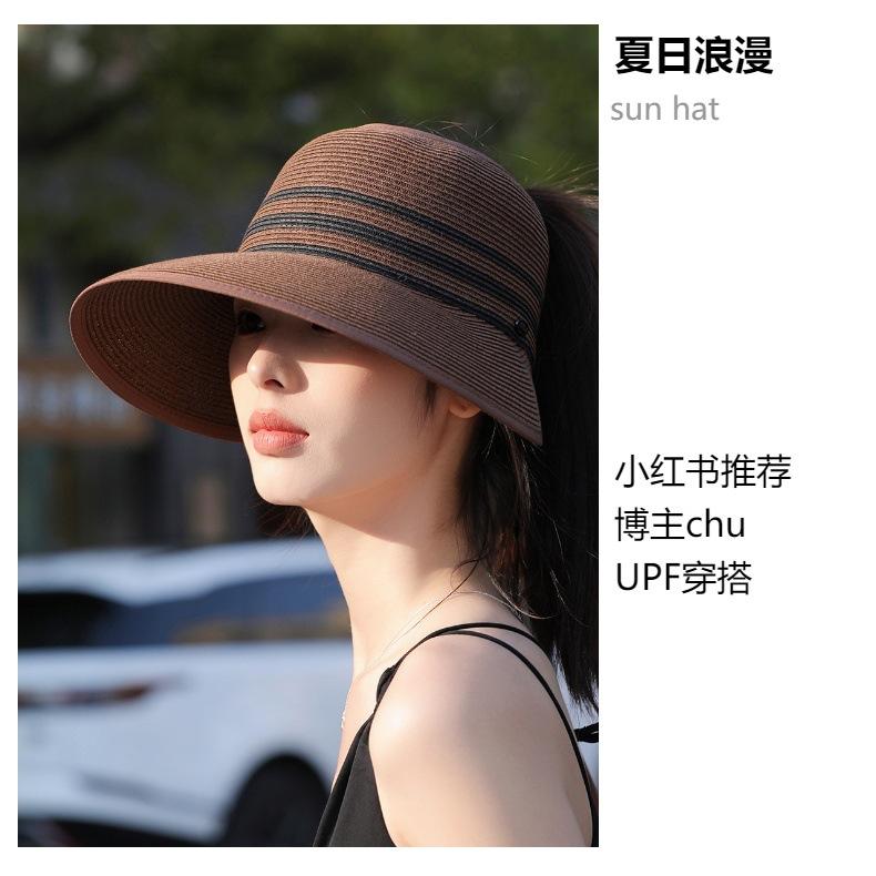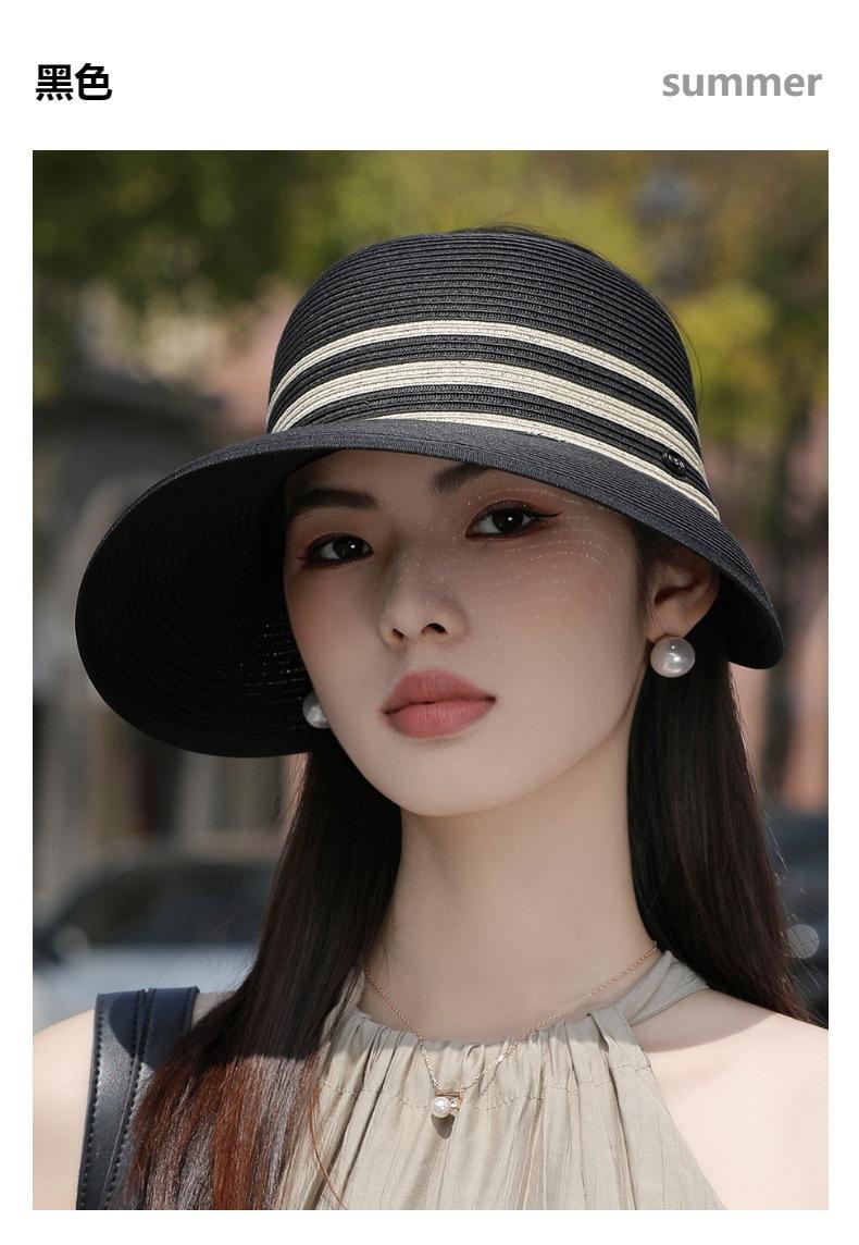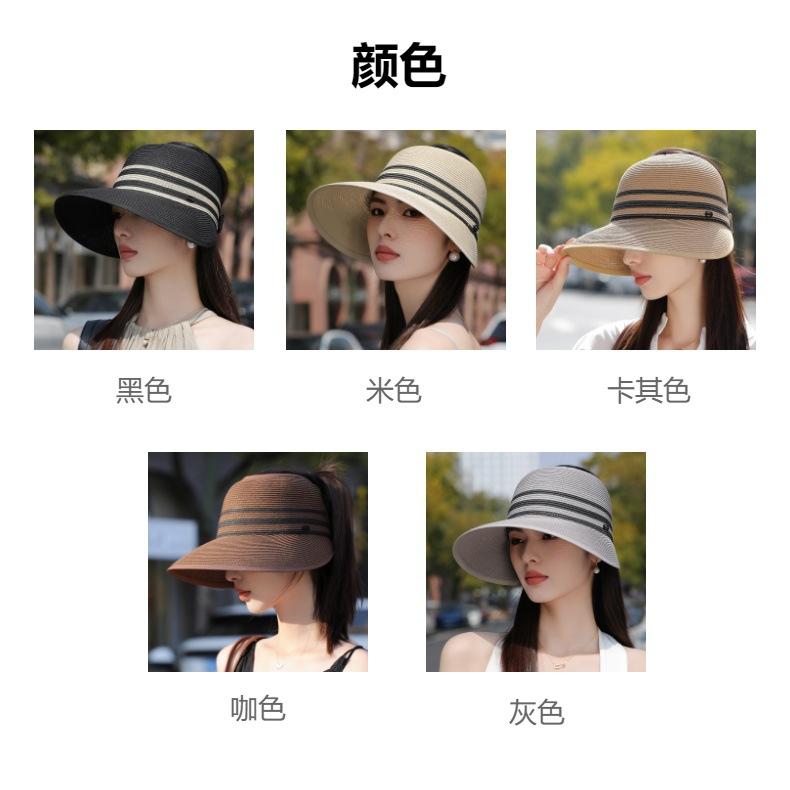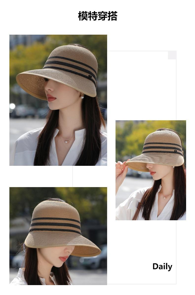 Sombrero de paja con ala grande y parte superior vacía para mujer, sombrero de playa para viaje de verano, plegable, sencillo y moderno, estilo coreano