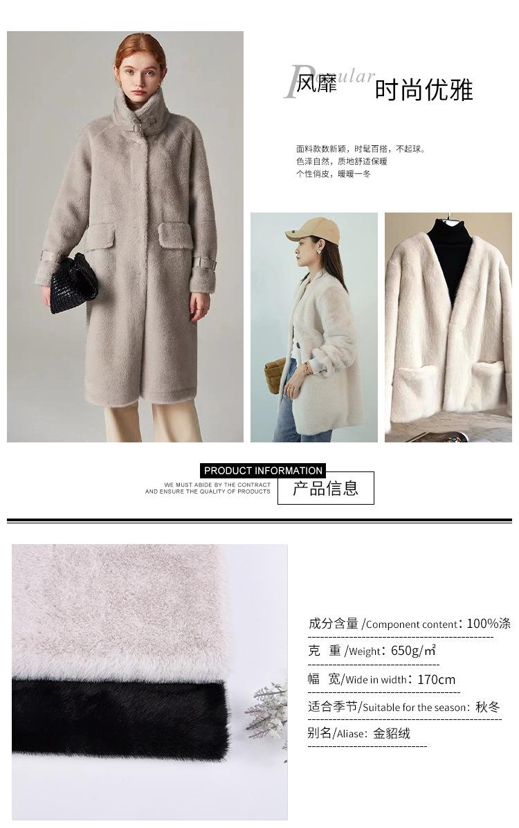 Nueva tela de visón dorado liso, de felpa, de imitación de visón, para otoño e invierno, para ropa de mujer, abrigos, zapatos y sombreros.