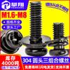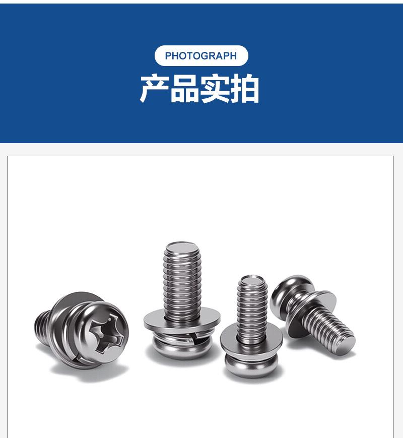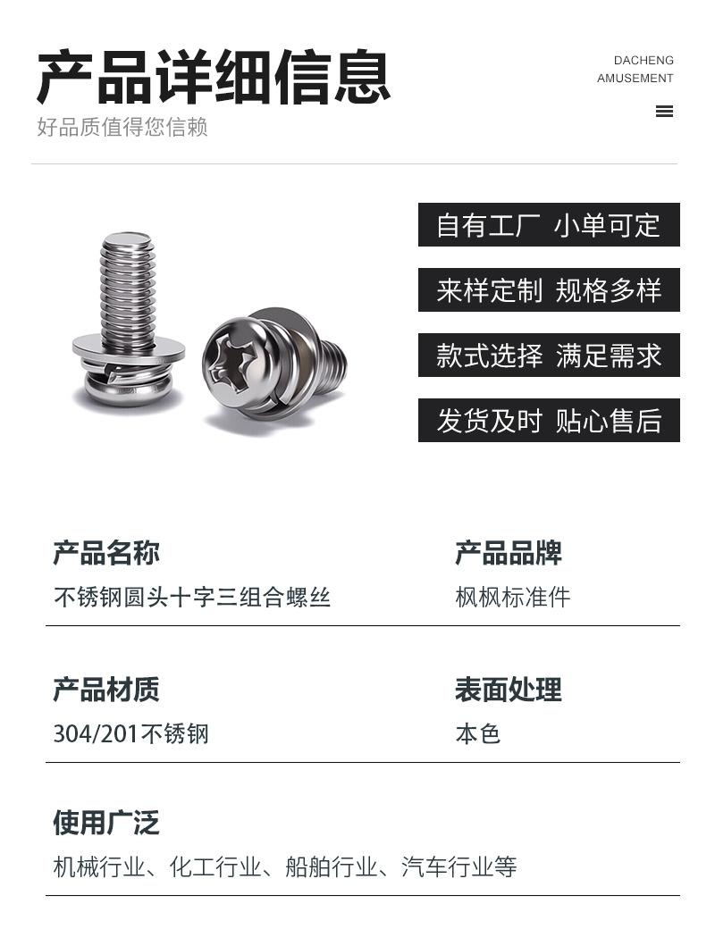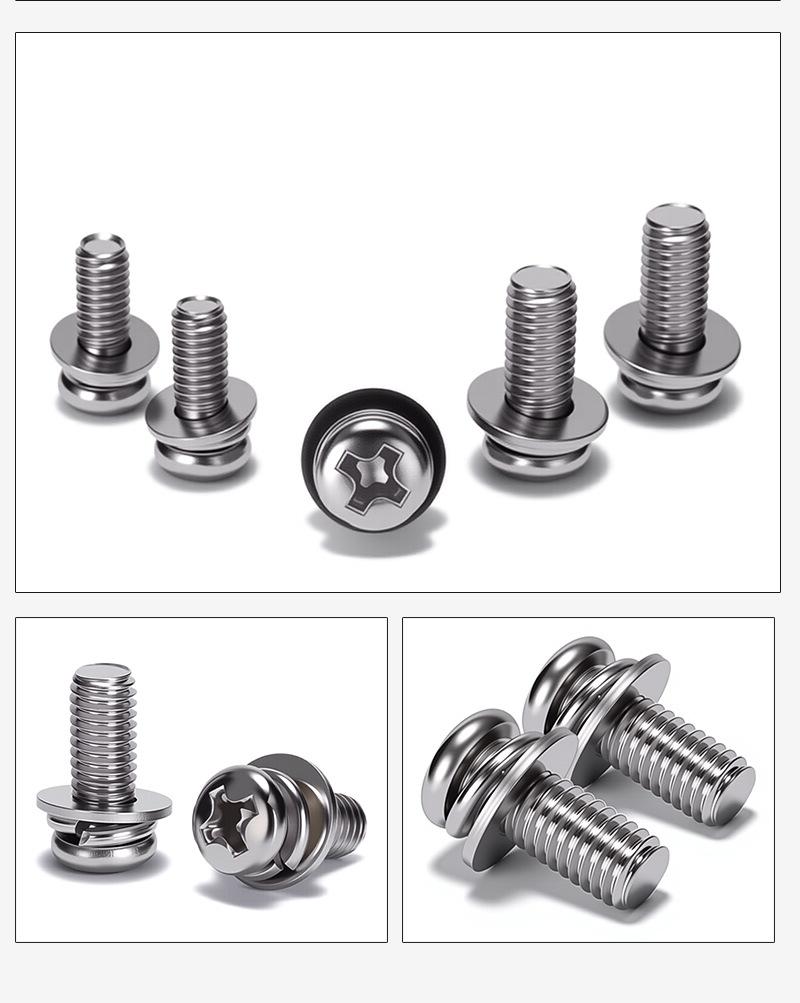 Acero inoxidable 304/201 cabeza redonda cruz tornillo de combinación triple tornillo redondo cabeza de sartén tornillo de combinación