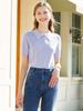 24 Verano Nuevo Polo de Color Sólido Púrpura Lazo Calado Suéter de Manga Corta Dulce Ajustado Top de Lana