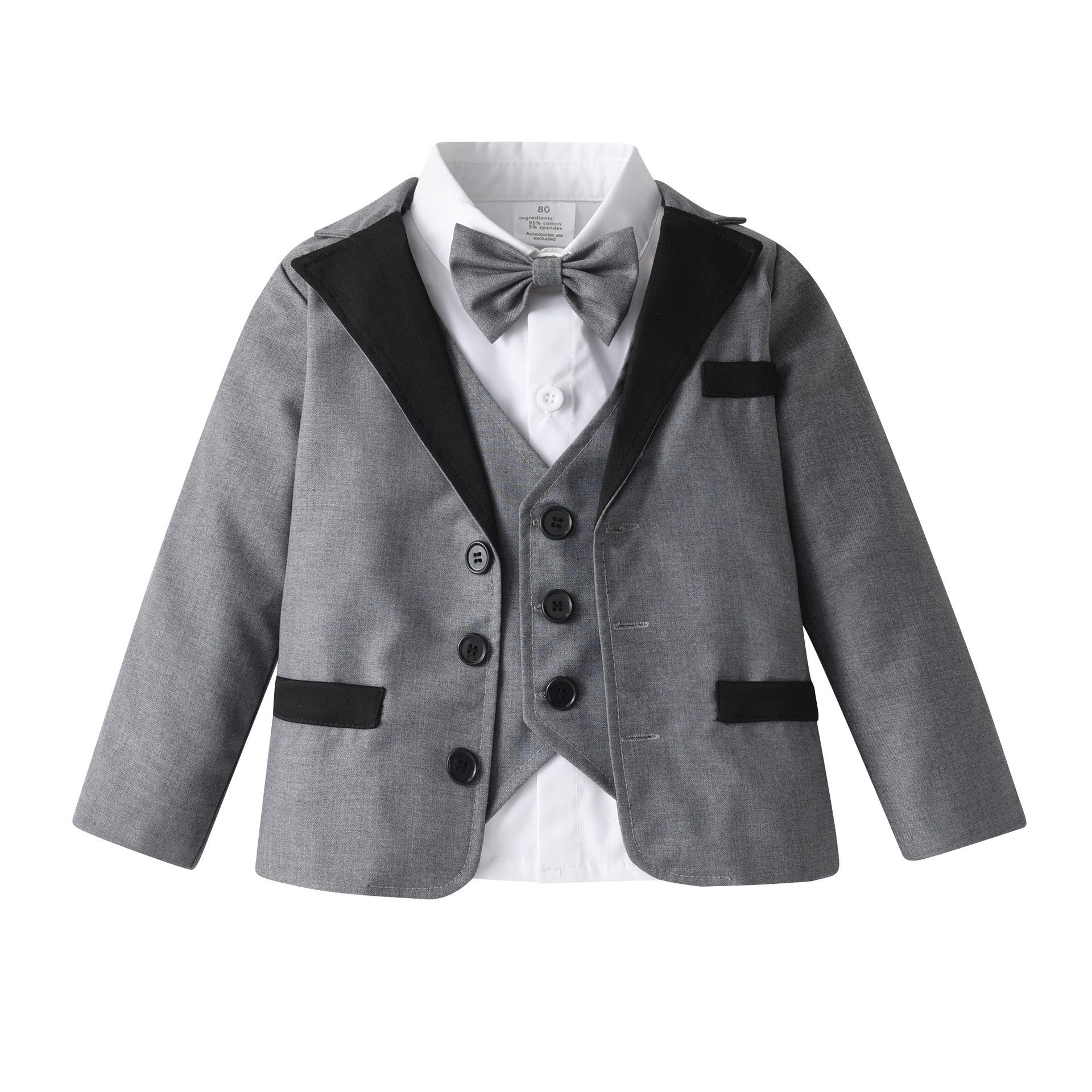 Ropa infantil de comercio exterior, chaleco falso británico, traje de tres piezas, ropa infantil para bebé, otoño e invierno con abrigo, traje para niño