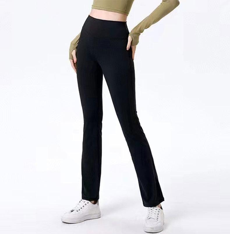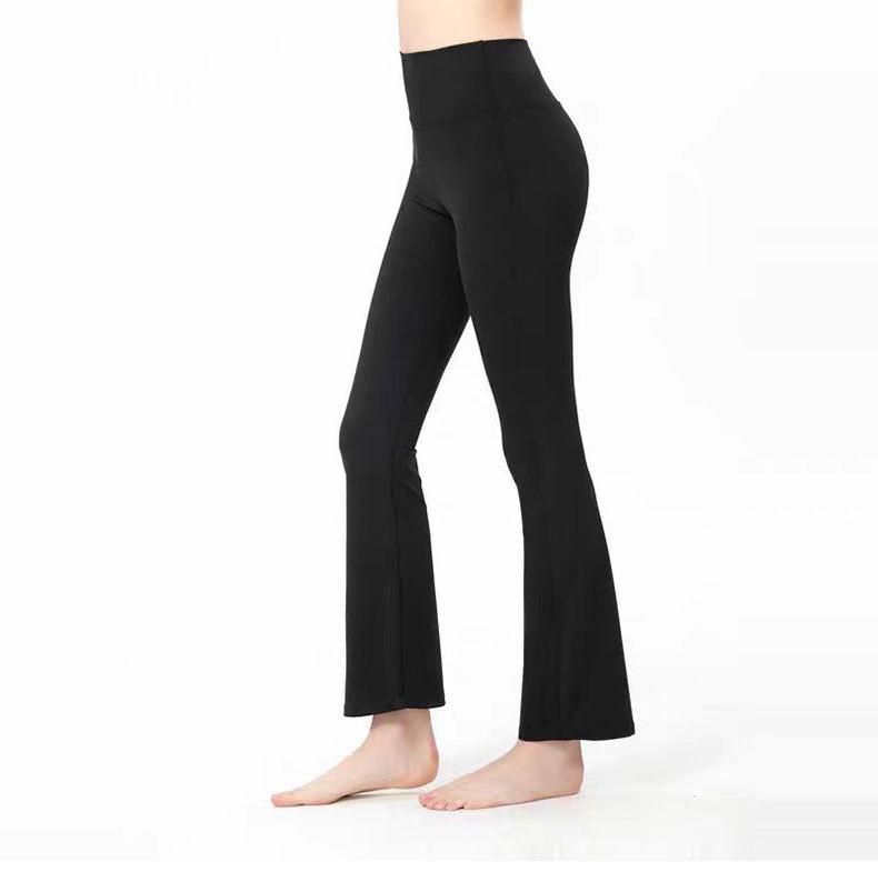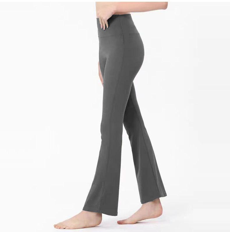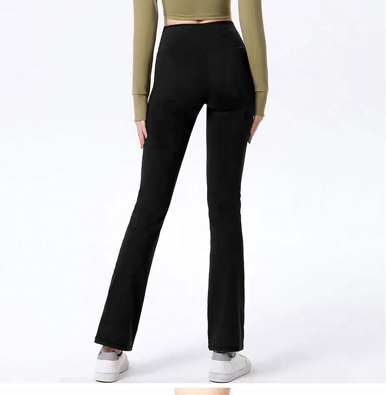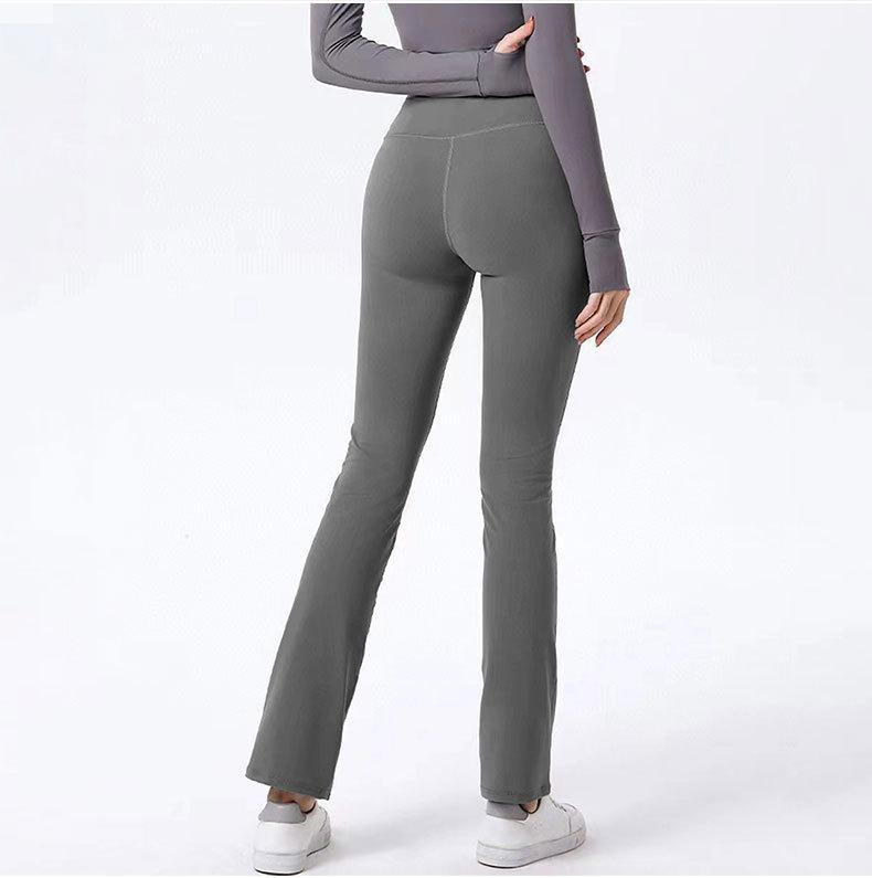 Pantalones de yoga acampanados de cintura alta, bonitos pantalones casuales de cadera, pantalones de fitness colgantes, pantalones ajustados adelgazantes elásticos de pierna ancha.