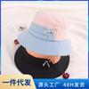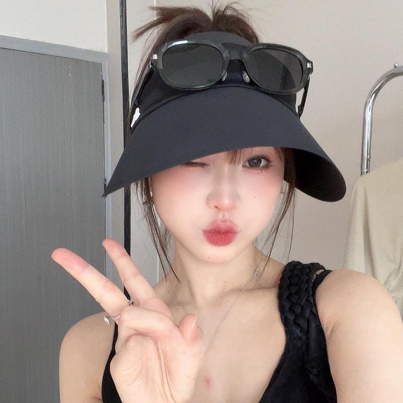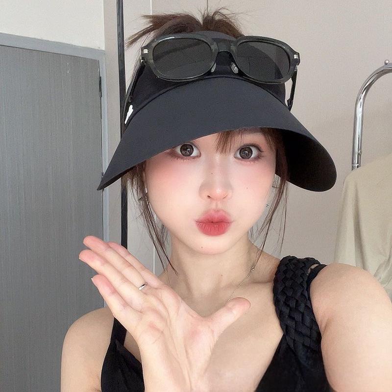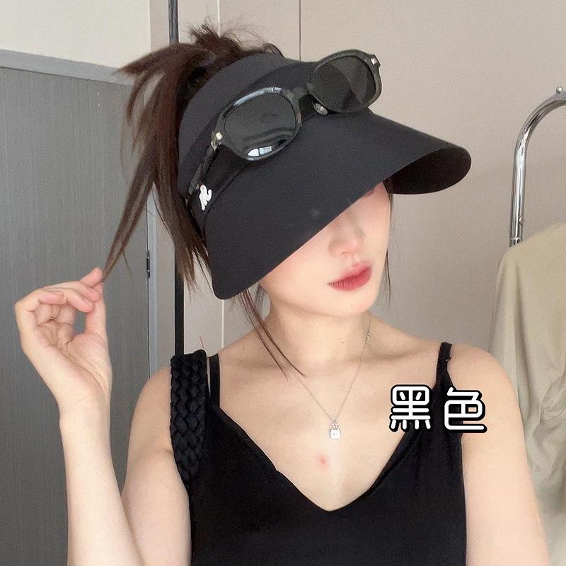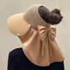 Sombrero de copa hueca de seda helada sin rastro, para niños, protector solar, parasol, resistente a los rayos UV, para exteriores, combinable, que cubre la cara, con cola de caballo