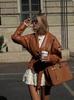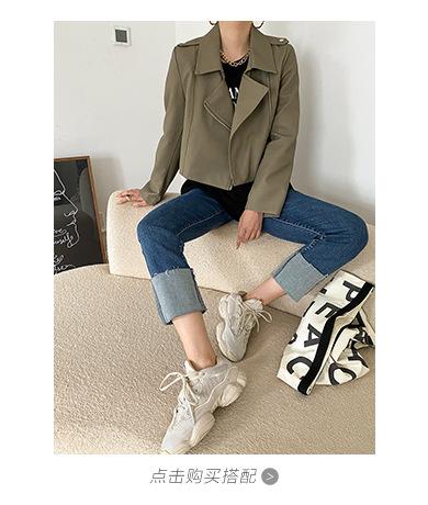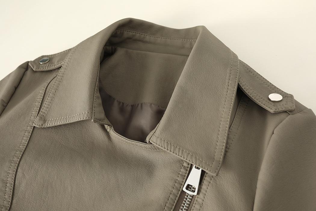 Sinan Chaqueta de Cuero de Supermodelo de Moda Estilo Motociclista con Cremallera Diseño 2025 Otoño e Invierno Nuevo Estilo Sn2069