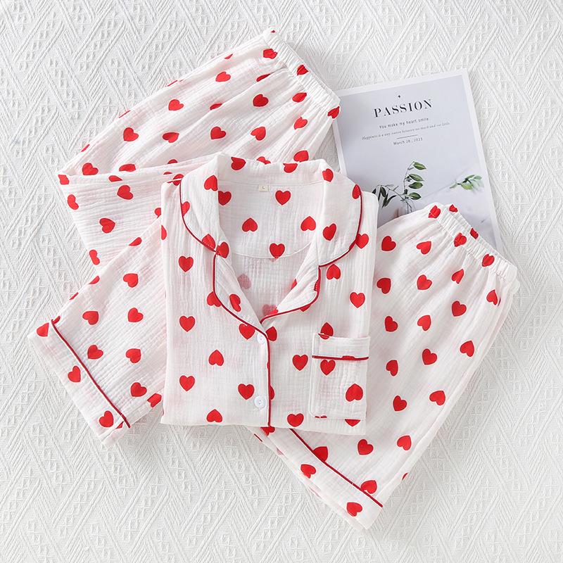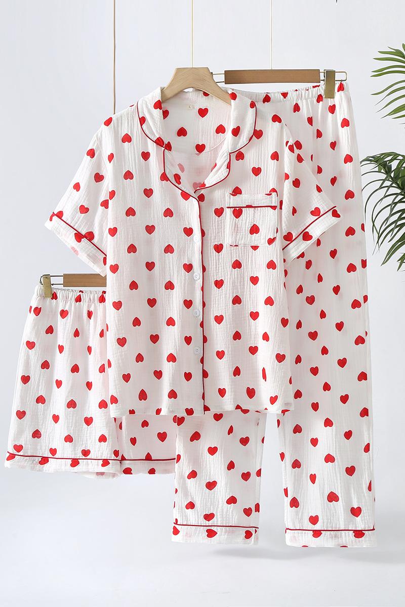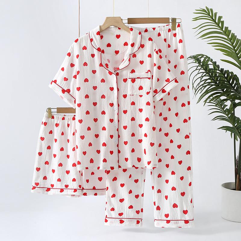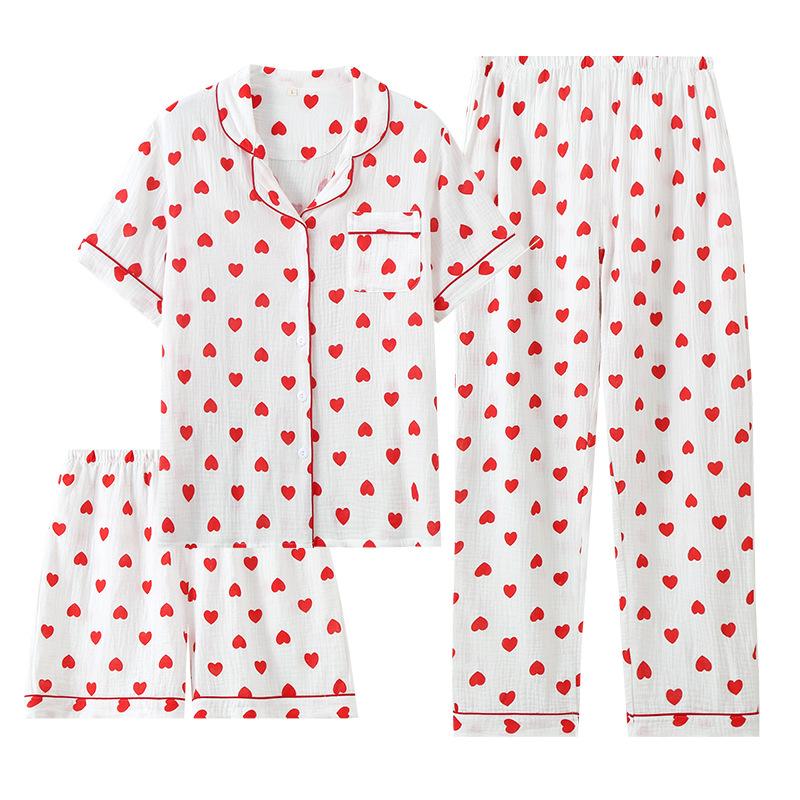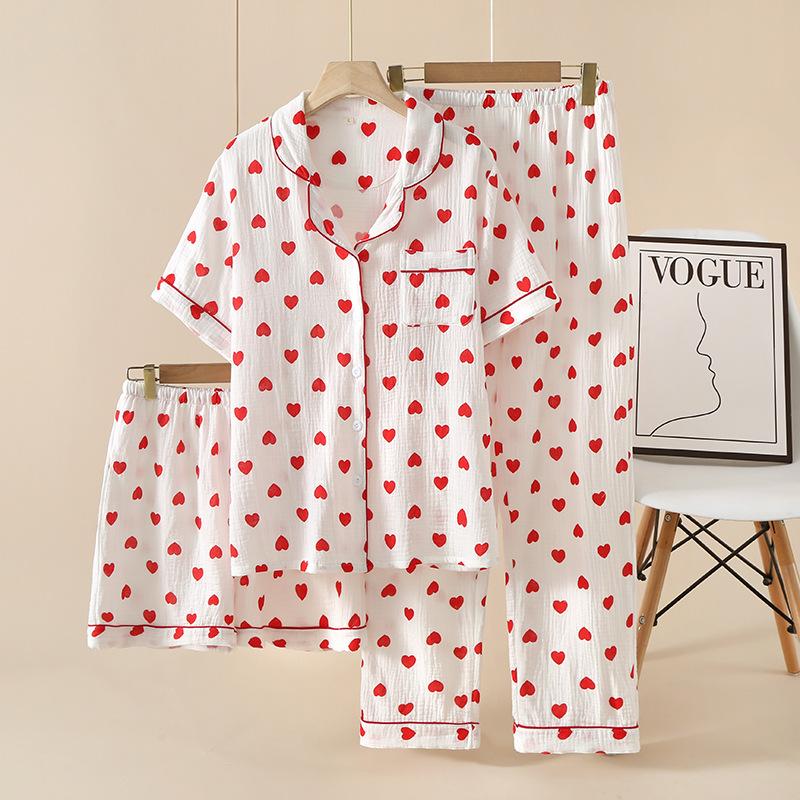 Pantalones cortos de manga corta de algodón crepé para mujer, traje de tres piezas para el hogar, venta al por mayor de fábrica, primavera, verano y otoño