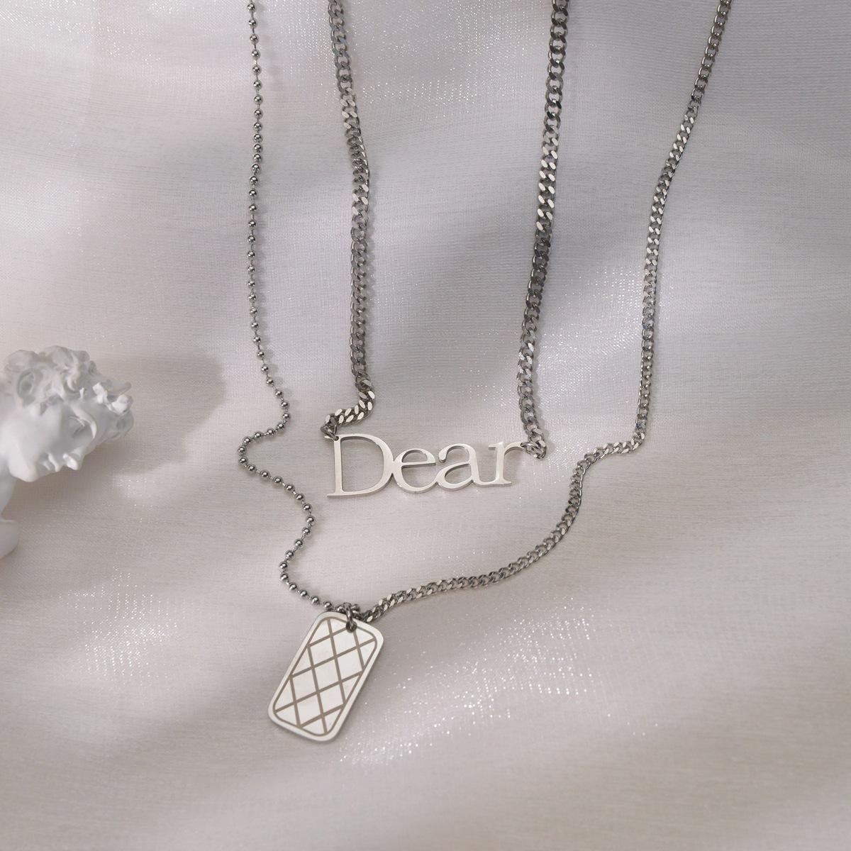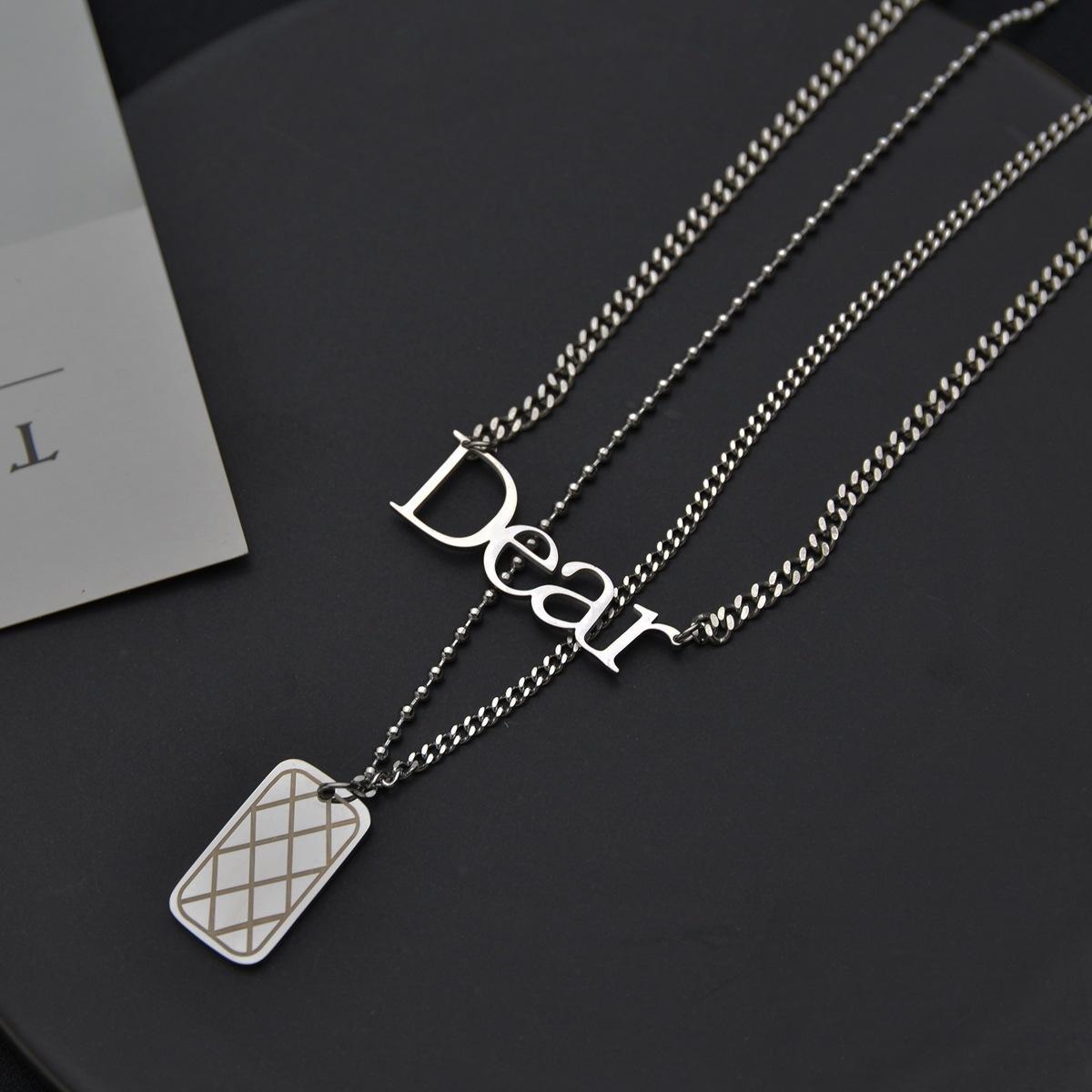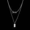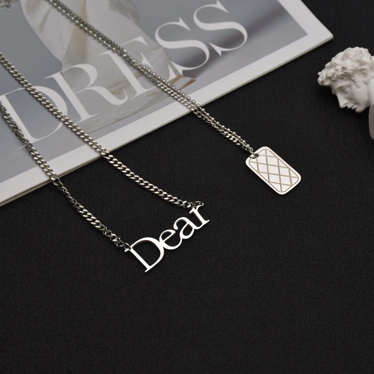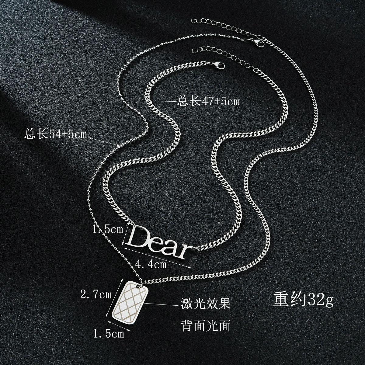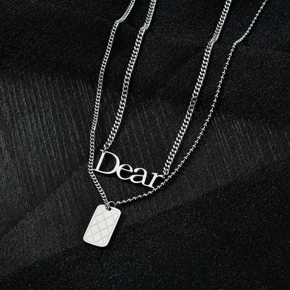 Estilo europeo y americano letra cool Querido textura colgante cuadrado collar de doble capa para mujer joyería de cuello apilada de acero inoxidable