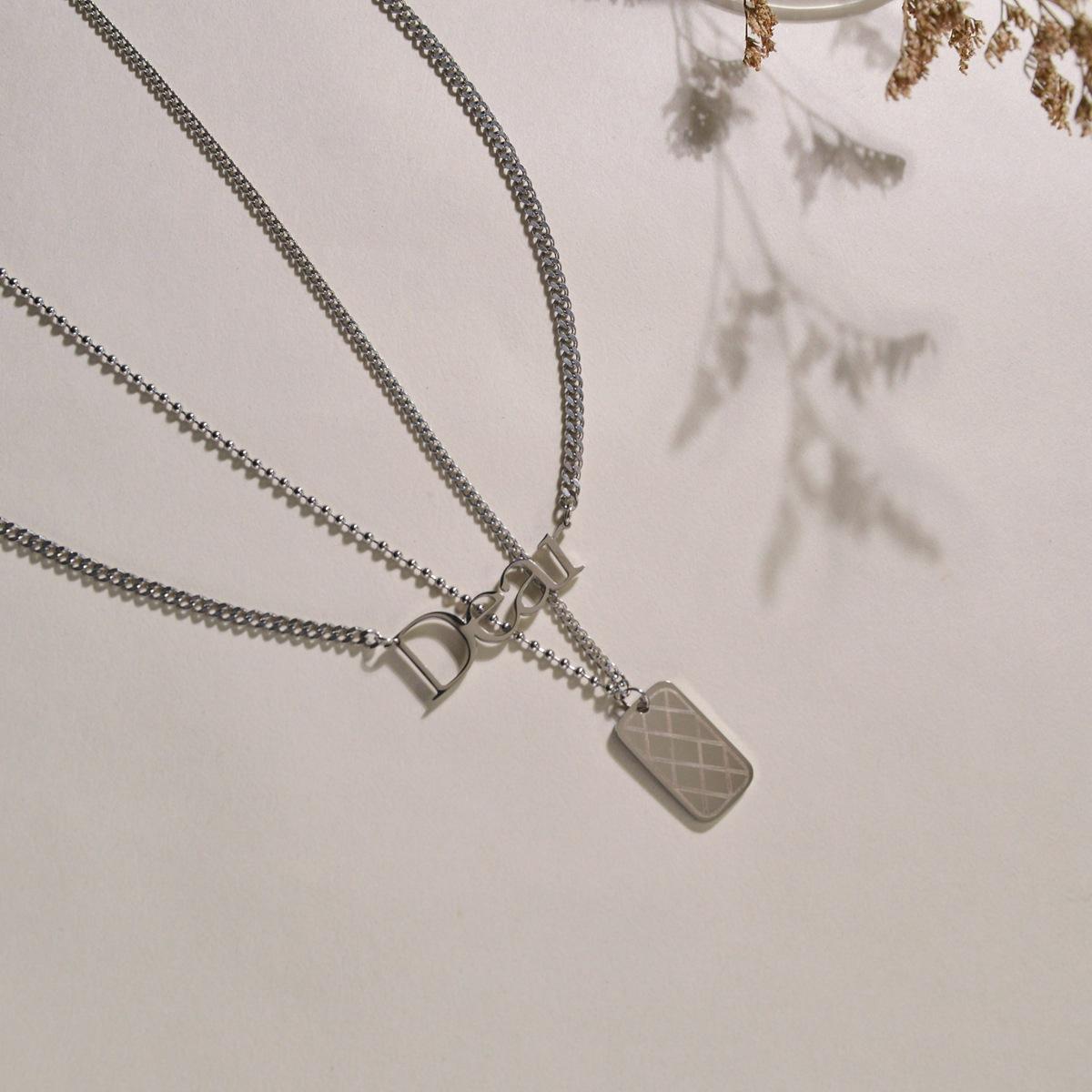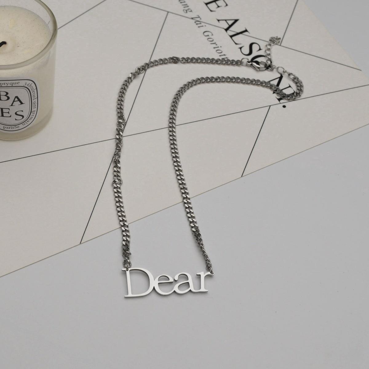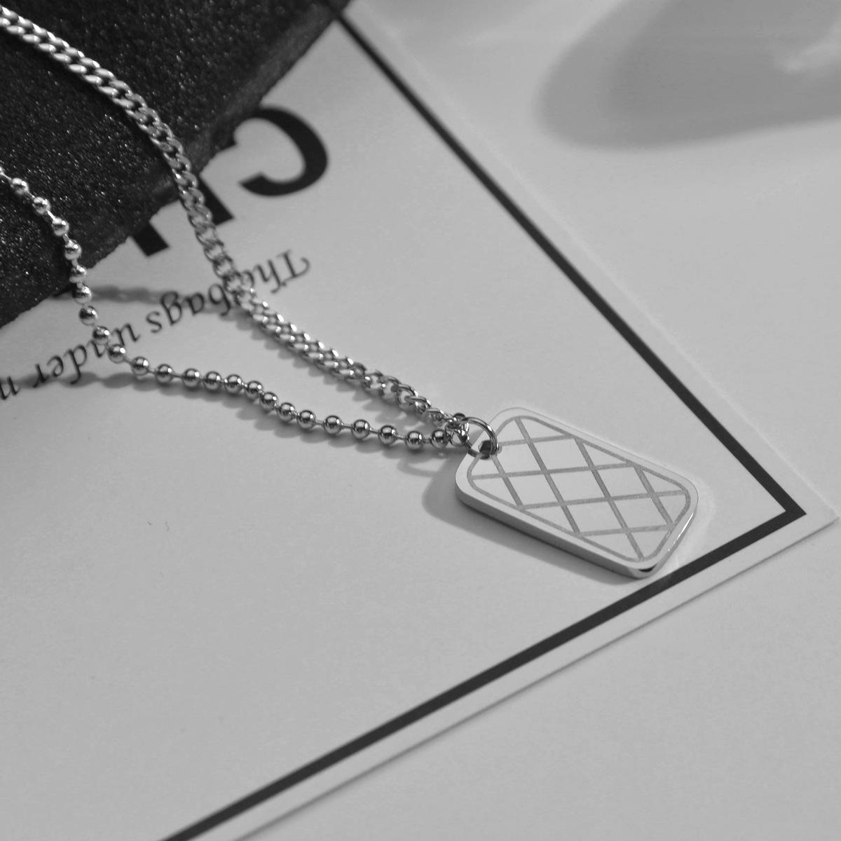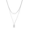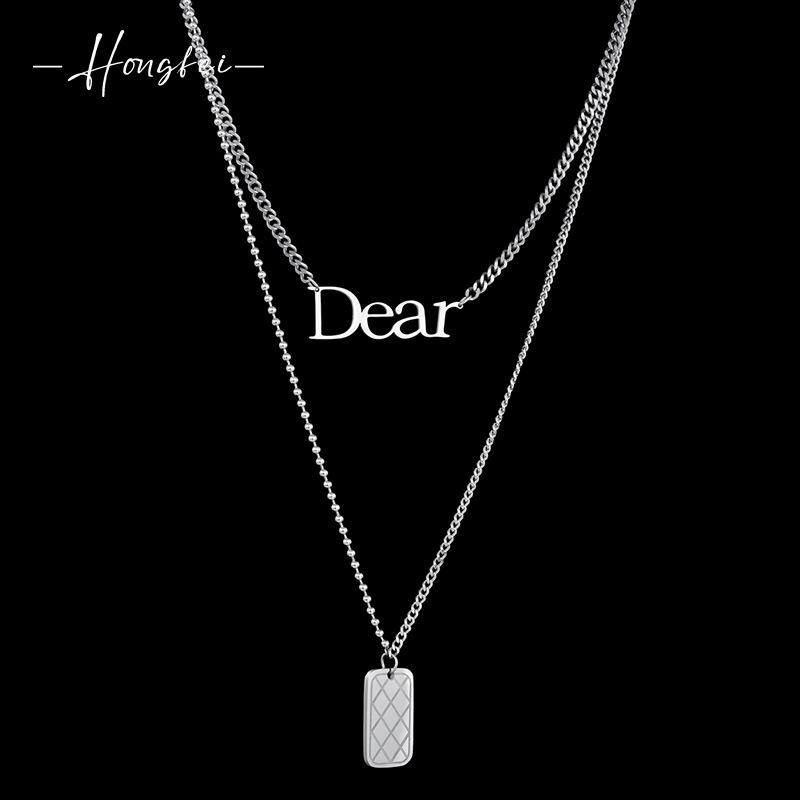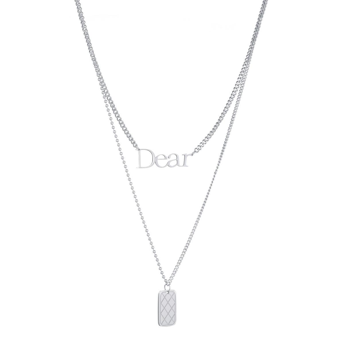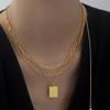 Estilo europeo y americano letra cool Querido textura colgante cuadrado collar de doble capa para mujer joyería de cuello apilada de acero inoxidable