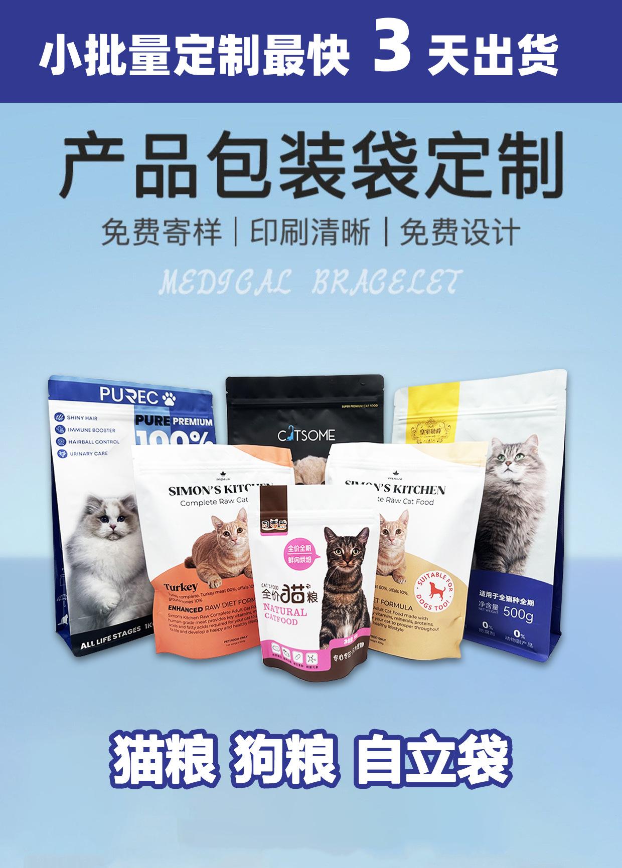Bolsa de envasado de alimentos para mascotas sellada de ocho lados, personalizada, para lotes pequeños, para perros y gatos, bolsa independiente, bolsa de papel de aluminio personalizada, logotipo